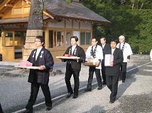 外宮さんの参道や森を渡る風が心地よく、清々しい気持ちで奉納させていただきました。丹精込めた赤福餅づくりに気持ちを新たにいたしました。