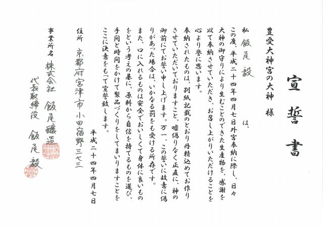 口に入れるものは安全でおいしく、身体によいものをという想いで酢造りを続けてきましたが、規模拡大を追わず、消費者、販売店、農家、社員から飯尾醸造があってよかったと思われる会社を目指します。