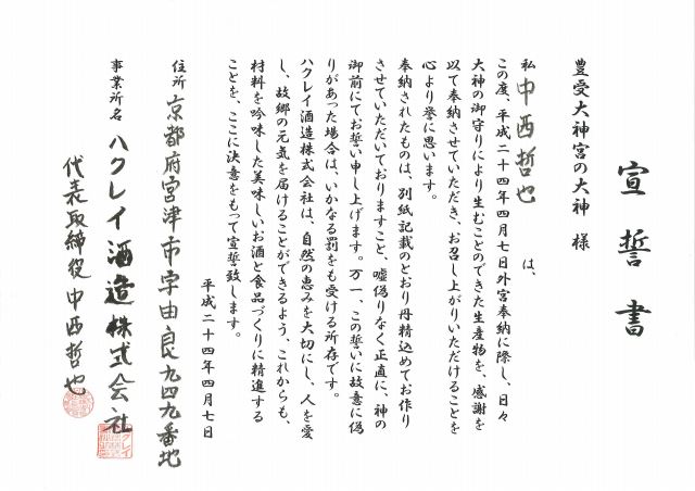 元伊勢とも言われる、京都の宮津市から奉納させていただきました。今回は、宮津商工会議所として、私たちの地域の特産品を代行奉納させていただきました。宣誓書の言葉一つ一つのように、本当に商売人の1番の原点に戻り、背筋が伸びる思いでした。そういった心を忘れないことが、商人(あきんど)の道だろうなと会議所の職員としても思います。外宮奉納市では、おかげさまで結構反応もいただいて、非常にありがたかったです。もう少し持って来ればよかったと思いました。【代行奉納:宮津商工会議所】
