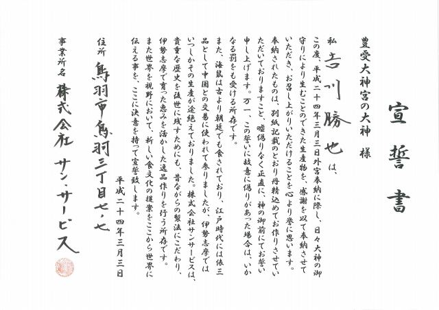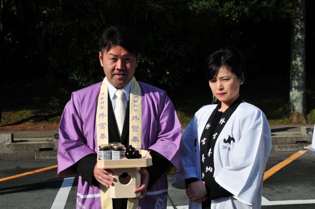 鳥羽浦村産かきの旨炊を奉納させていただきました。鳥羽・浦村で収穫されたものであり、伊勢神宮に精通しているものなので、是非にと参加させてもらいました。初めて参加させて頂きましたが、いろいろなものを見せて頂けて、勉強になりました。