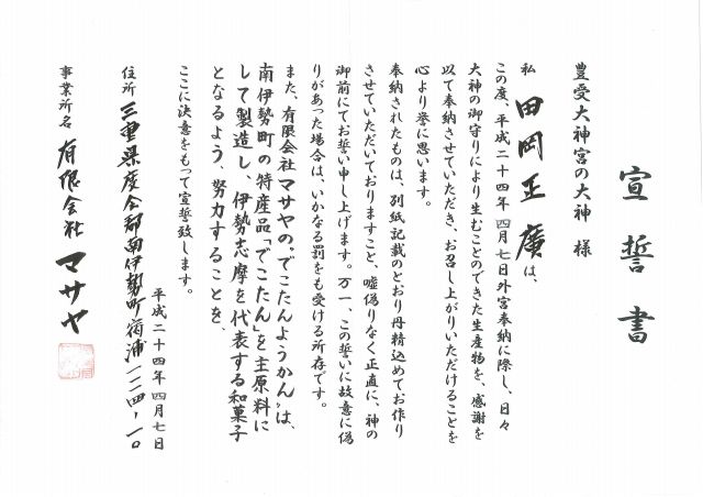 「でこたんようかん」を日本一の神様に奉納する喜びを感じました。