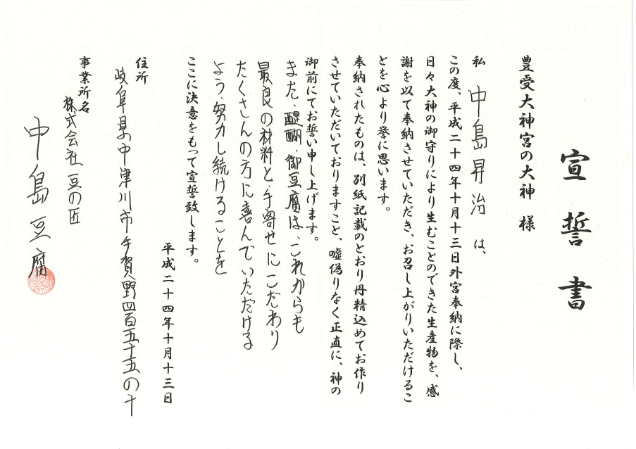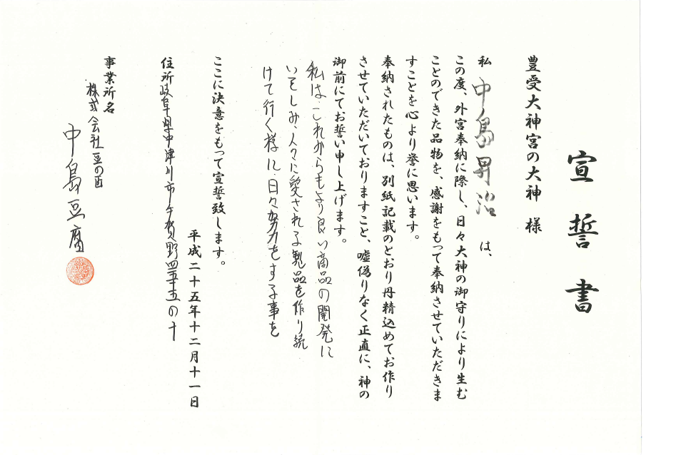 また、奉納品である醍醐につきましては、伊勢二見で作られております海水にがりを使用。大変クリーミーで、濃厚なお豆腐です。