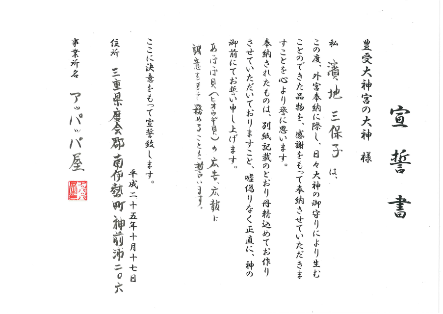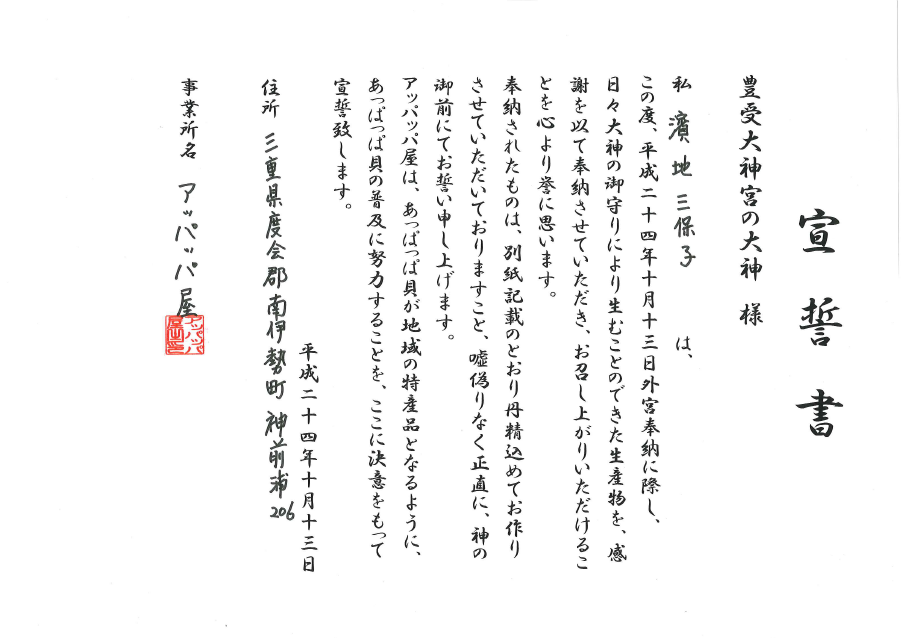 住所 | 三重県度会郡南伊勢町神前浦206 |
