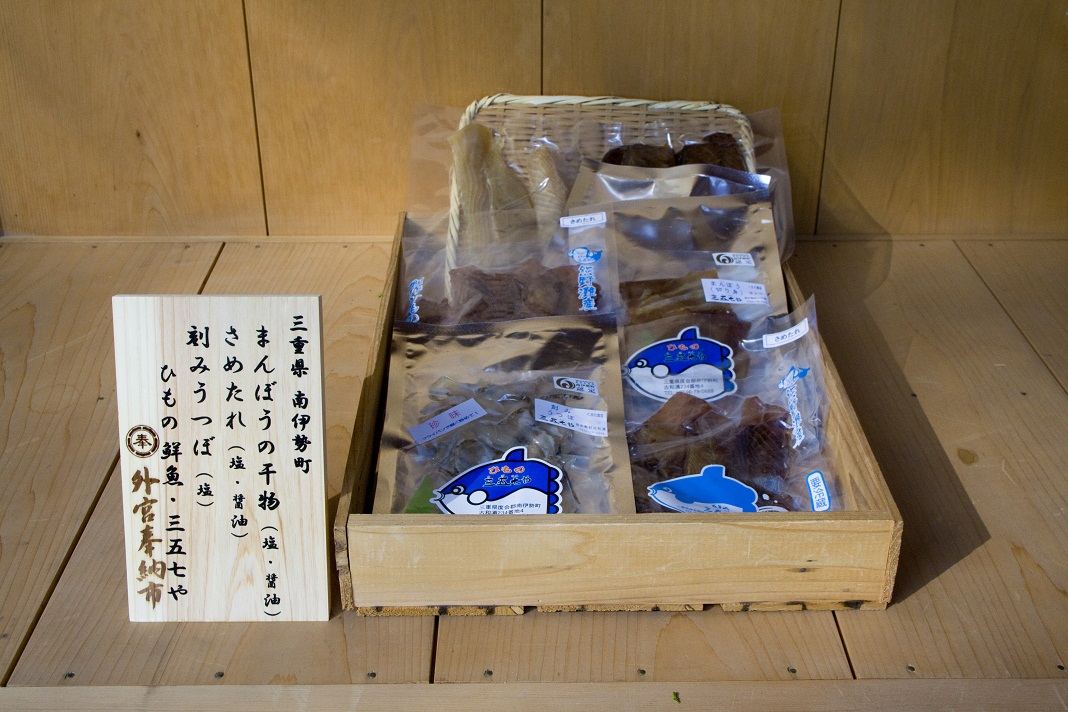 当店の干物は、地元熊野灘の海で水揚げされた新鮮な魚を主原料とし、自家工場で熟練の職人が手間を惜しまず丁寧に作り上げた自信作です。