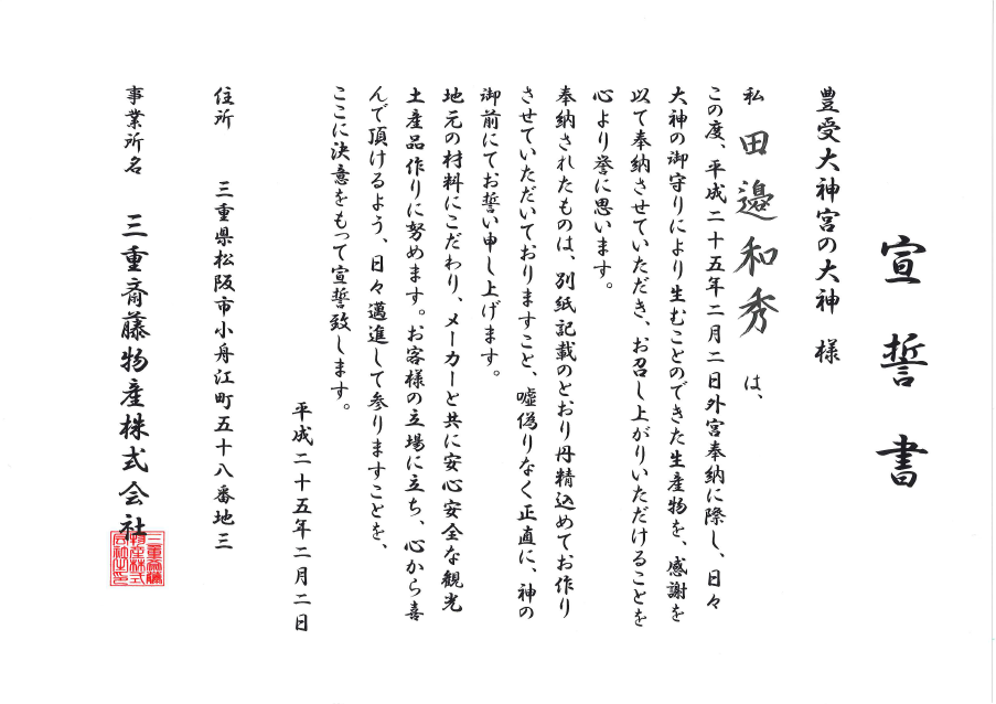 三重県にお越しのお客様に心から喜んでいただける商品をお届けできますよう、日々邁進してまいります。