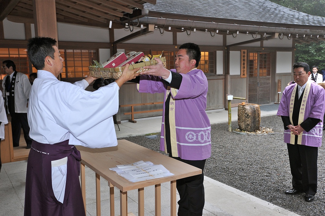 県内で収穫された原料を使った商品を伊勢の神様に奉納したいと思ったので、今回参加しました。奉納したことで、お客様の立場に立ち、もっと喜んで頂けるような観光土産品作りに努めなければと益々感じました。また神楽・御垣内参拝も神聖な気持ちになりました。奉納後は、奉納商品について得意様より尋ねられることが多くなり、今後、地元の食が他地域にも広がり、三重が発展するように願うばかりです。