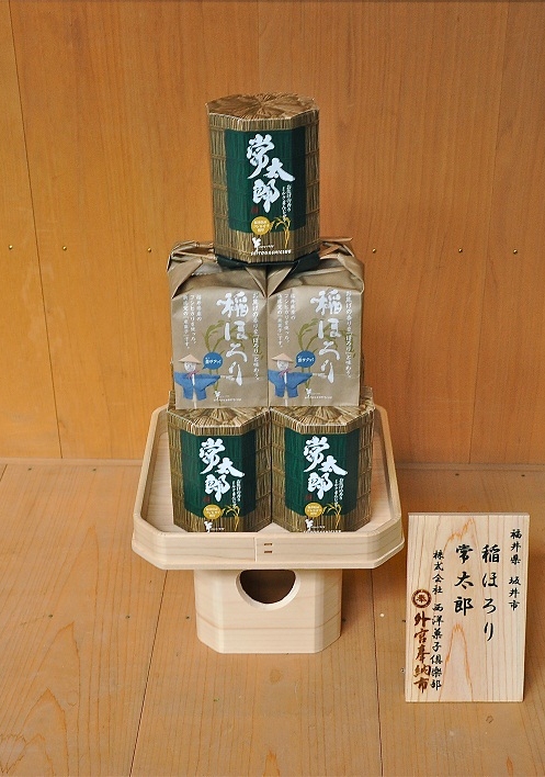 お饅頭なのに、まろやかな洋菓子の風味がする。クッキーなのに、芳ばしいおこげの香りがする。「常太郎」と「稲ほろり」は、これまでになかった新感覚の和洋菓子です。福井発祥の米である「コシヒカリ」の米粉を、特殊な手法で焼き上げることで「おこげの香り」をお菓子に実現しました。2011年の創業110周年を記念し、地元の方から愛されるお菓子を作り続けた、初代「常太郎」の志を受け継いで生まれたお饅頭に初代の名前をつけました。「稲ほろり」は、おこげの香りのするホロホロの新触感のクッキーです。昨年、全日空の機内販売に採用され、3か月間で3万箱超を売り上げました。どちらも、福井を代表するお土産菓子として育っています。