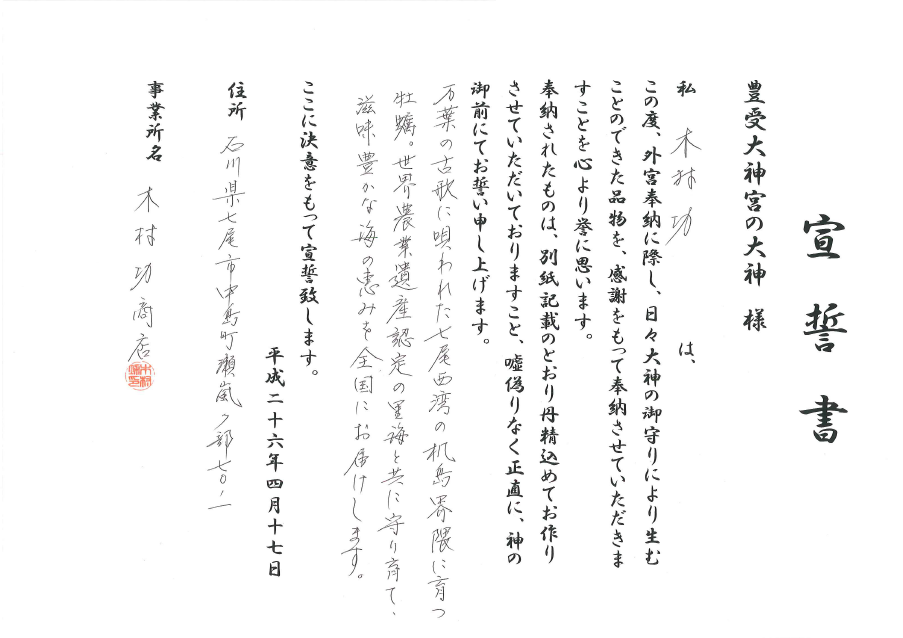 奉納品 から付きかき