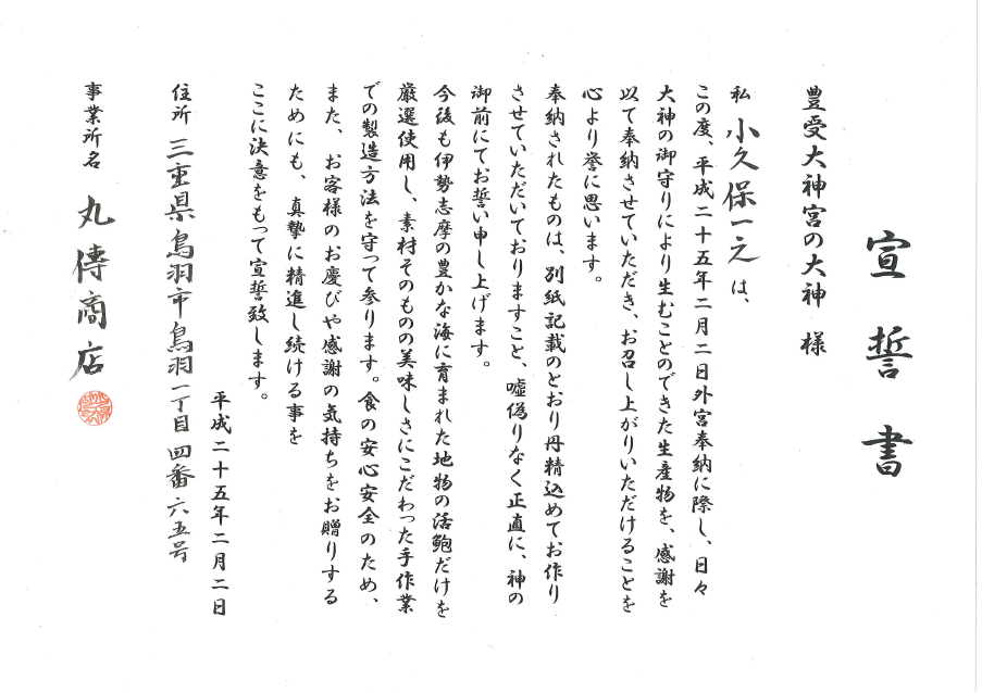 事業内容 | 大正十二年、鮑問屋として鳥羽にて創業。鮑を中心とした海産物の卸業を営むとともに、伊勢志摩産にこだわった鮑・サザエなどを厳選使用した加工品の製造販売を行っております。 |