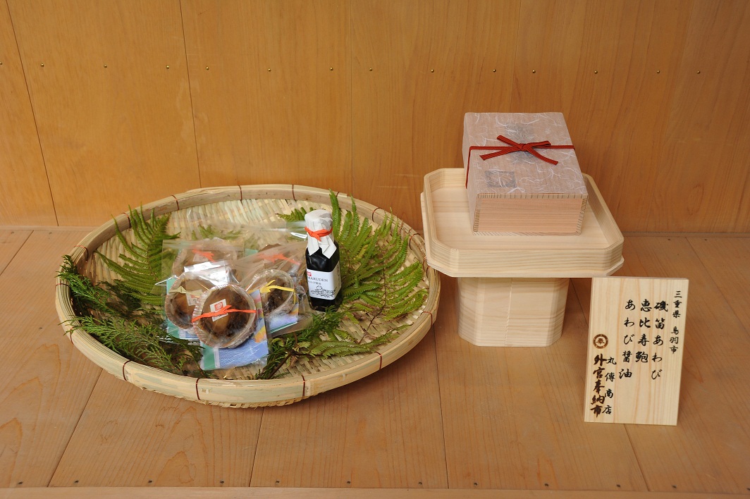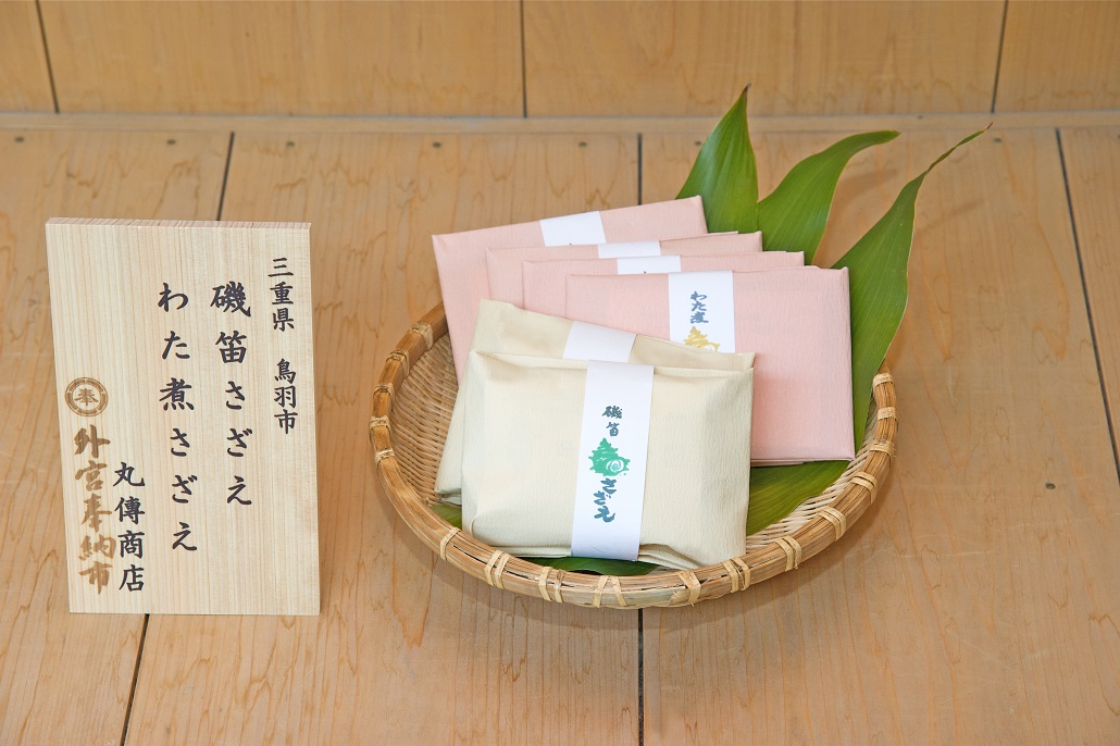 伊勢志摩の豊かな海に育まれた地物の鮑・さざえだけを厳選し、丹精込めてひとつひとつ手作業でお作りしております。鮑を知り尽くした卸問屋だからできる、どこにも真似のできない逸品でございます。磯の香り、自然の旨味をお楽しみくださいませ。平成25年奉納の「磯笛あわび」とともに、お慶びの贈り物に、ぜひどうぞ。