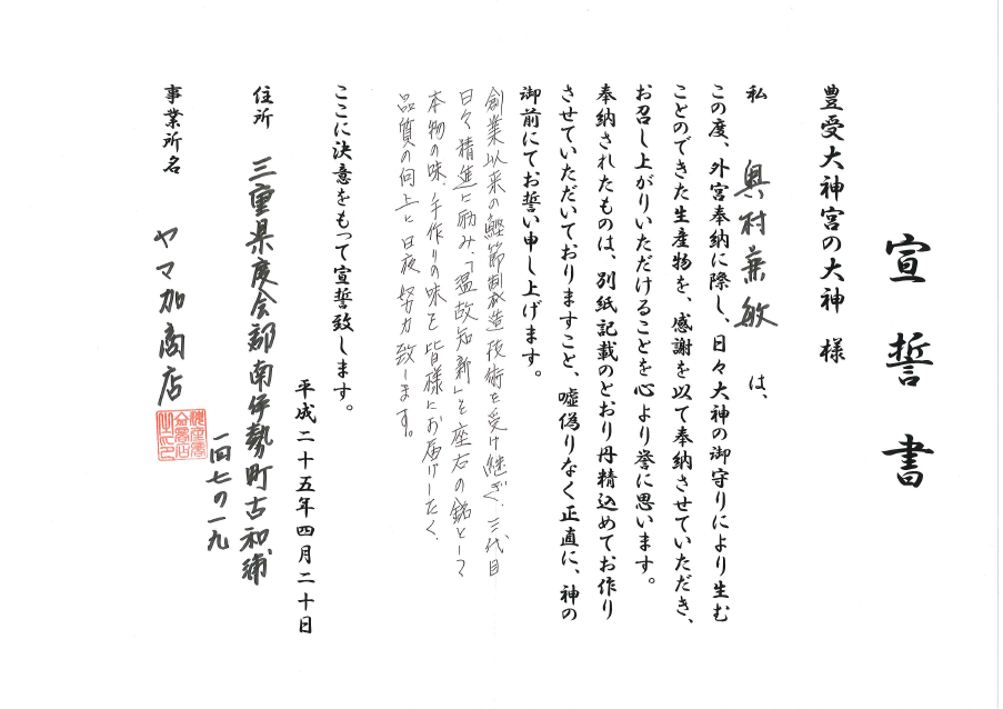 商工会からの紹介で参加しました。とても意義あるものと感じ、大変よかったです。奉納を機会に、一層販売促進を進めていきたいと思っています。今後に期待したいです。