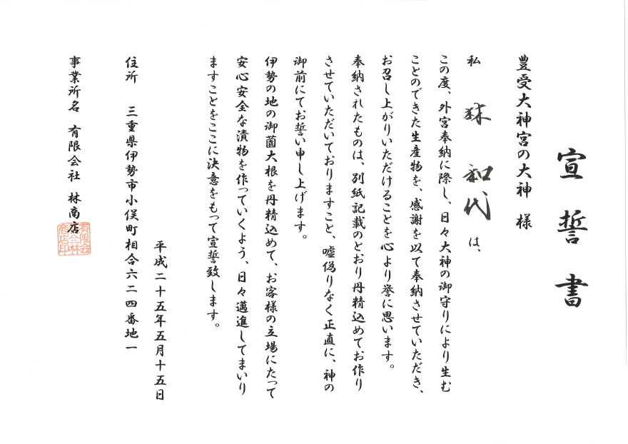 事業内容 | 伊勢沢庵、各種漬物製造 |