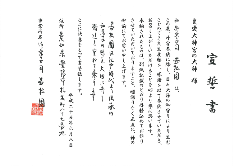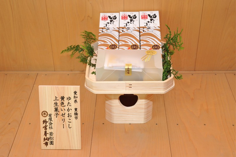 江戸創業の御菓子司(おんかしどころ)「若松園」は、昔と変わらず今も東海道で営業する御茶席菓子の老舗です。上生菓子は月二回変りでお伝えする季節菓子。昭和天皇御即位の年には、若松園の「ゆたかおこし」・「ちぎり饅頭」・「袖もよう(干菓子)」が豊橋名物として豊橋市より陛下に献上の栄を賜りました。「ゆたかおこし」は素朴でやさしい味わいの茶の湯菓子です。又、「若松園の黄色いゼリー」は、文豪・井上靖氏の自伝小説「しろばんば」の中で「口では表せないおいしさ」と絶賛頂きました。