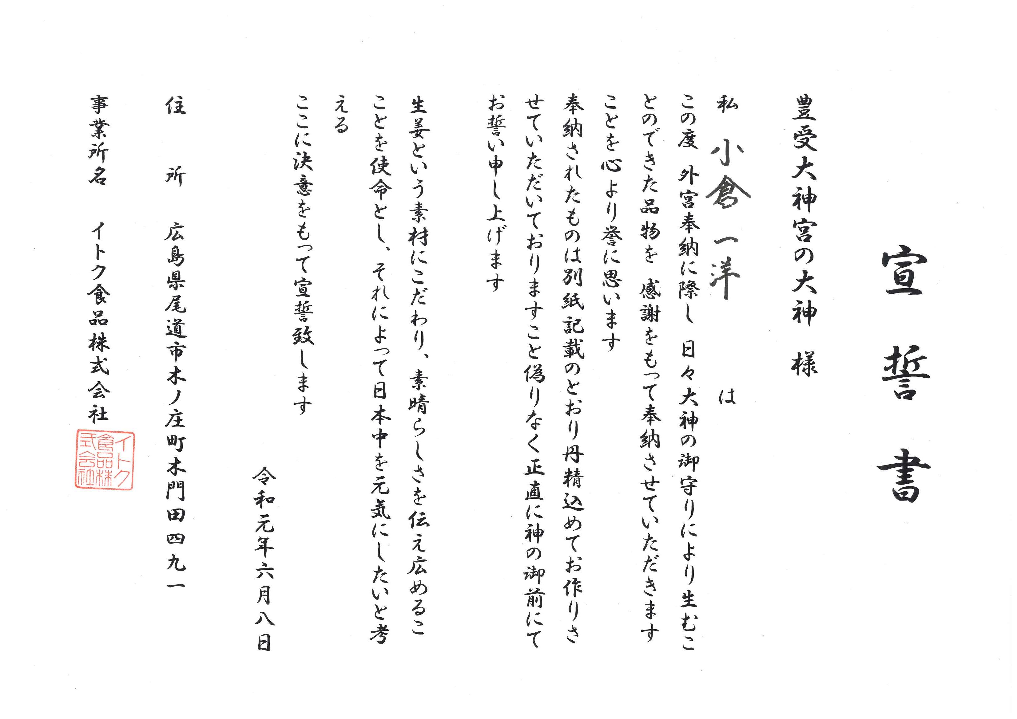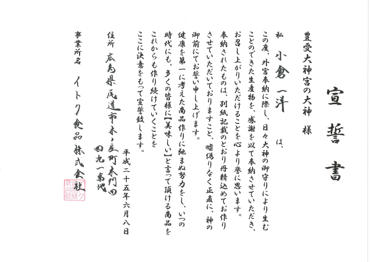 伊勢製餡所さんがチラシを配っていて知りました。奉納して、今後も頑張ろうと改めて思いました。今後は参拝客もより多くなると思いますので、伊勢のスーパーで奉納品の展示と販売を行って頂きたいと思います。