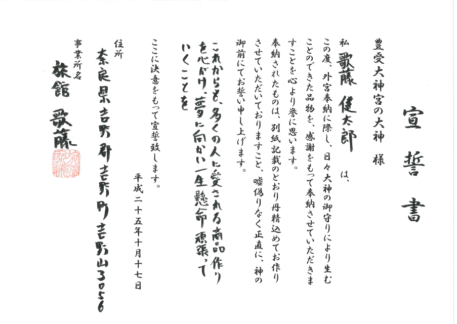 食の神様との事で奉納をしたかったので、参加しました。神に誓い、自分を見直せる機会であり、本当によかったです。神楽・御垣内参拝も、めったにできない経験であり、身が引き締まる気持ちになりました。奉納後は商品への自信と、さらに従業員のやる気が伺われました。今後は、外宮奉納市の開催をますます増やしていただきたいと思います。
