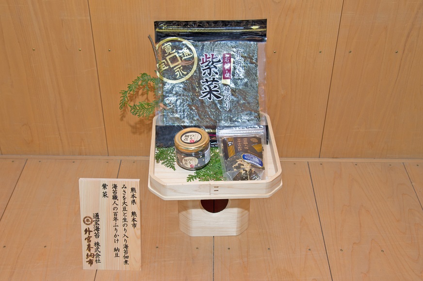 説明 | 有明海産の海苔に味付けしています。国内産の素材を使用し、化学調味料無添加です。 |
