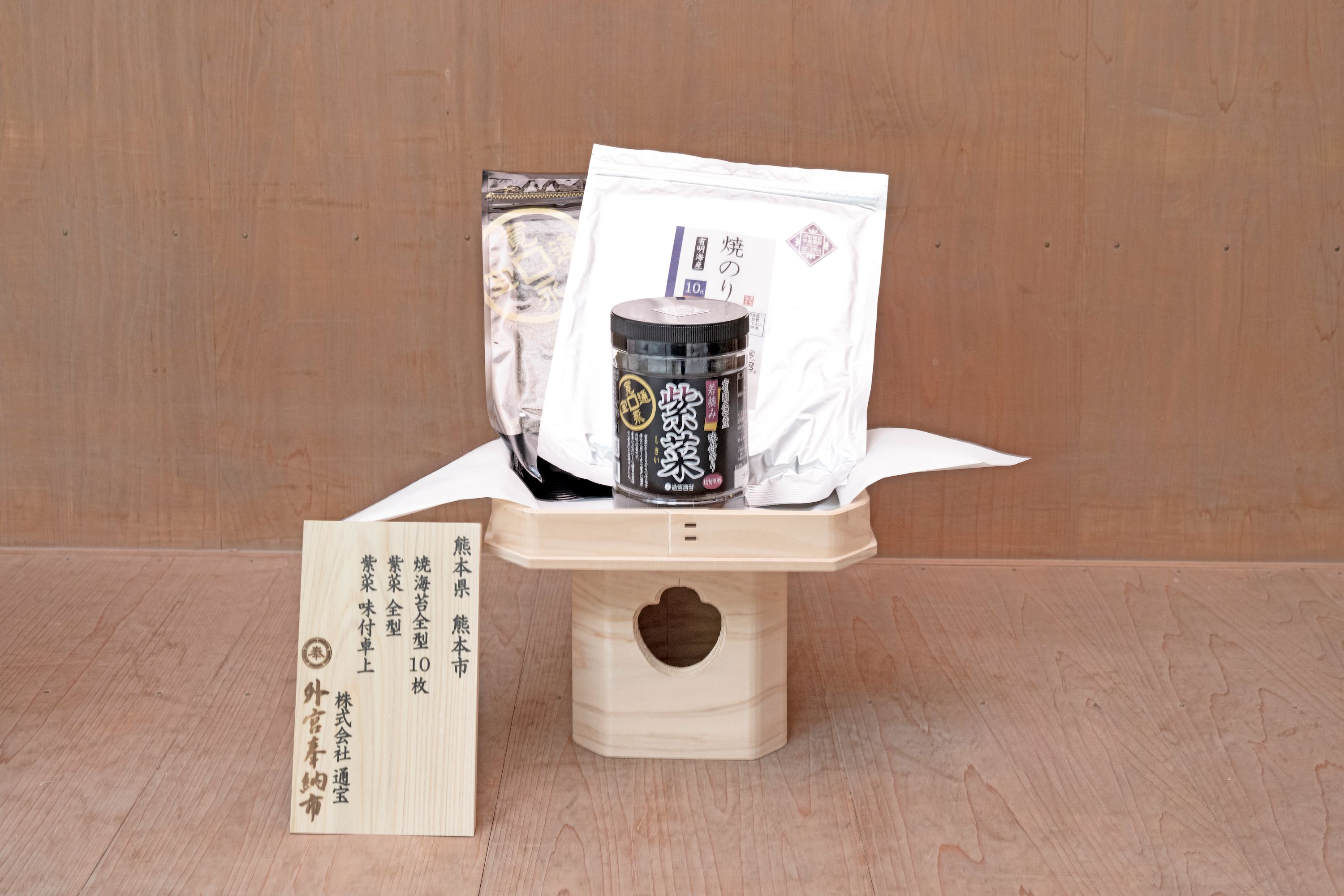 説明 有明海苔を使用し、味付けの出し国内産の素材(かつお、海老、昆布、椎茸、あご(飛魚))を使用しました。化学調味料無添加です。