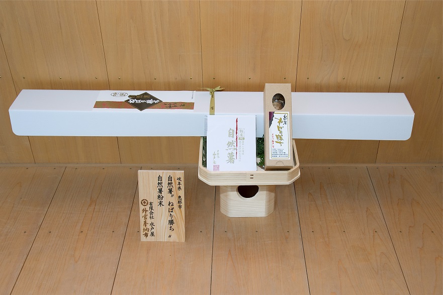 “ねばり勝ち”は岐阜県の“飛騨・美濃すぐれもの”の認定品で独自の減水栽培法と種子繁殖によるウイルスフリー化の技による美味しい自然薯をご堪能下さい。