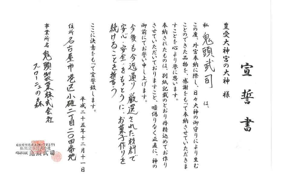 知人(㈲ふらんす 倉世古氏)の紹介で、奉納に参加しました。奉納して、正直な物作りという点に重きを置かなくては、と感じました。神楽・御垣内参拝も体験でき、普段できないので良い機会でした。今後も謙虚を心がけて取り組んで行きます。