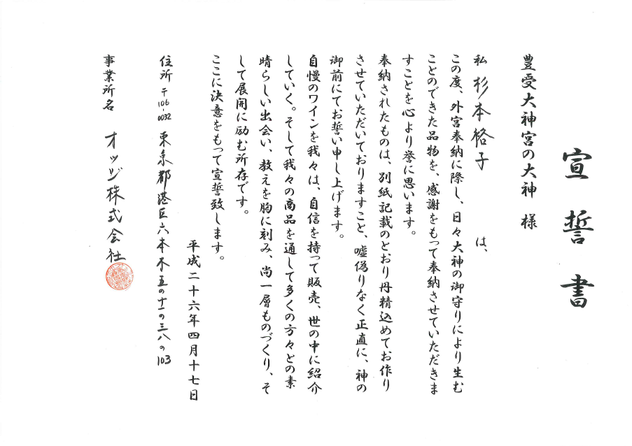 2014年6月には、ヨーロッパ初の神社がサンマリノに建立されることも祈り、イセ・ロッソとイセ・ビアンカが出来上がりました。