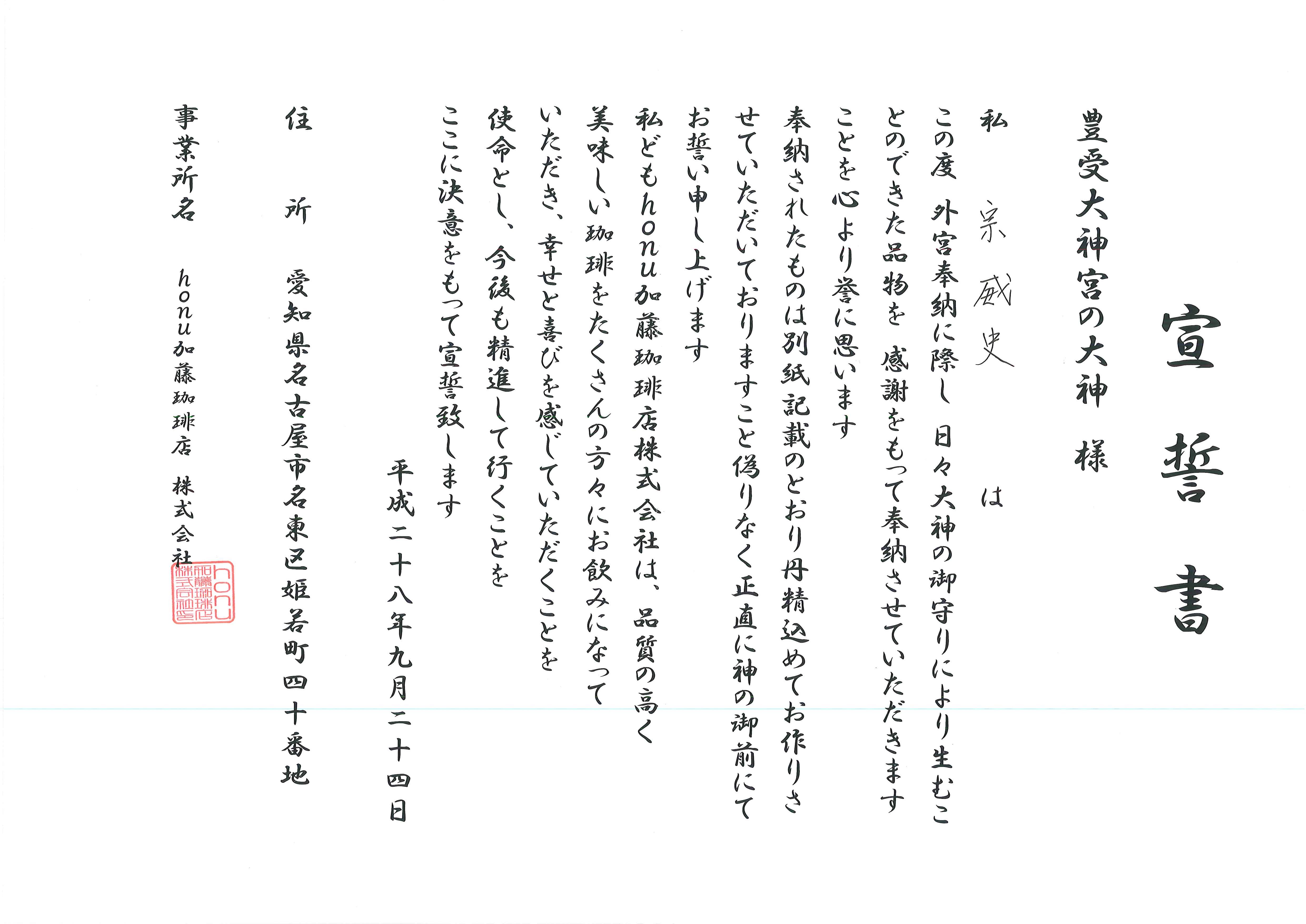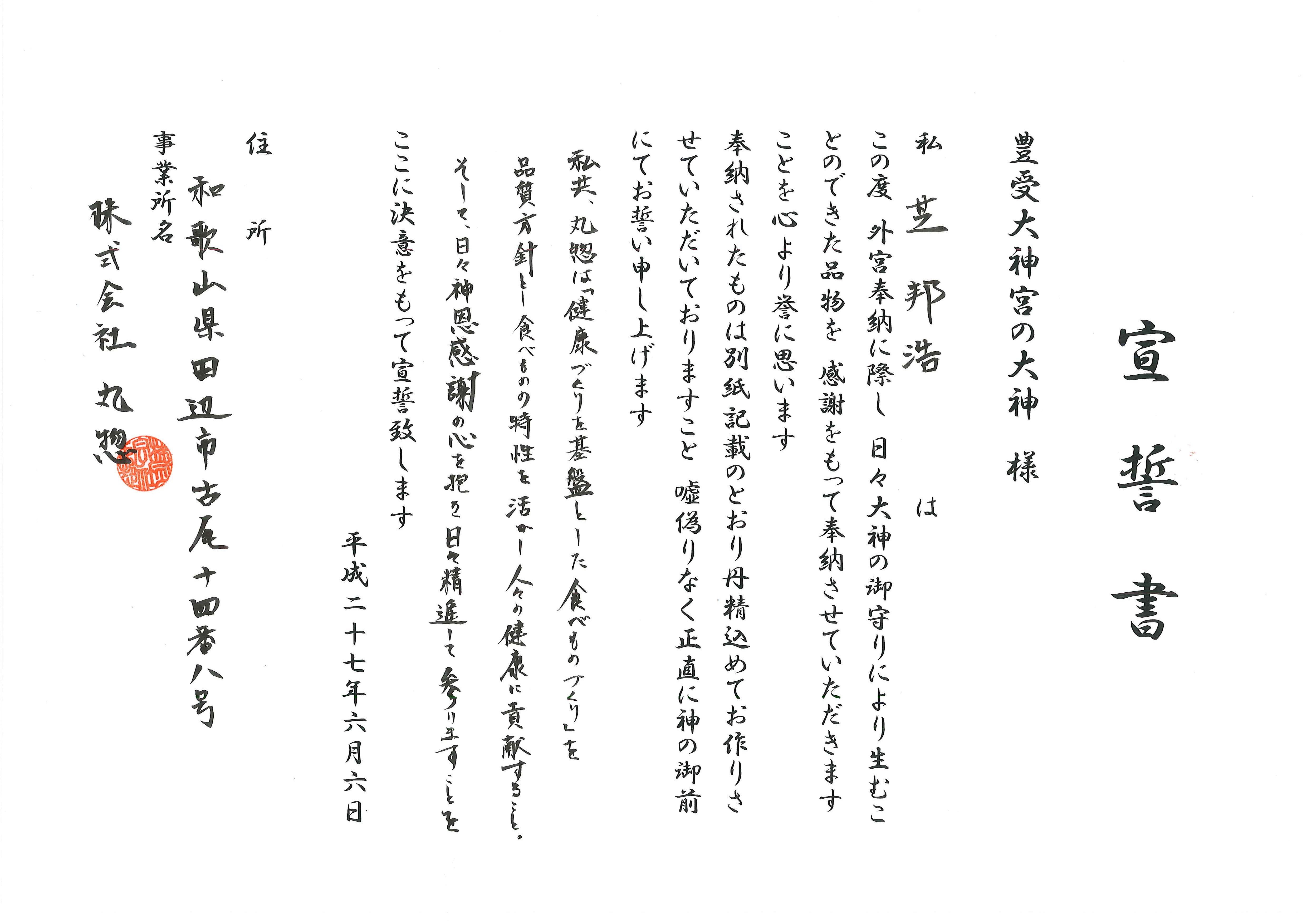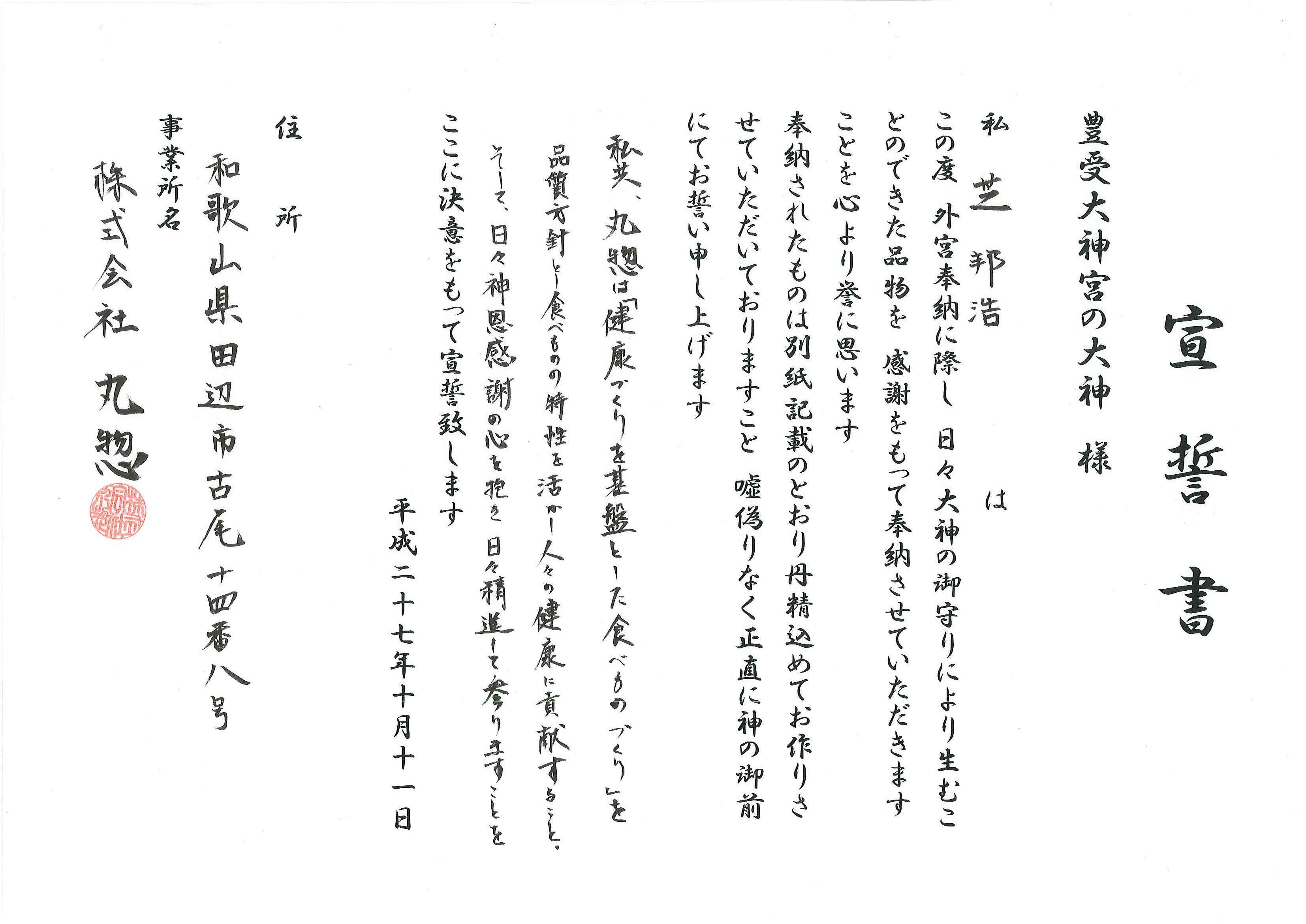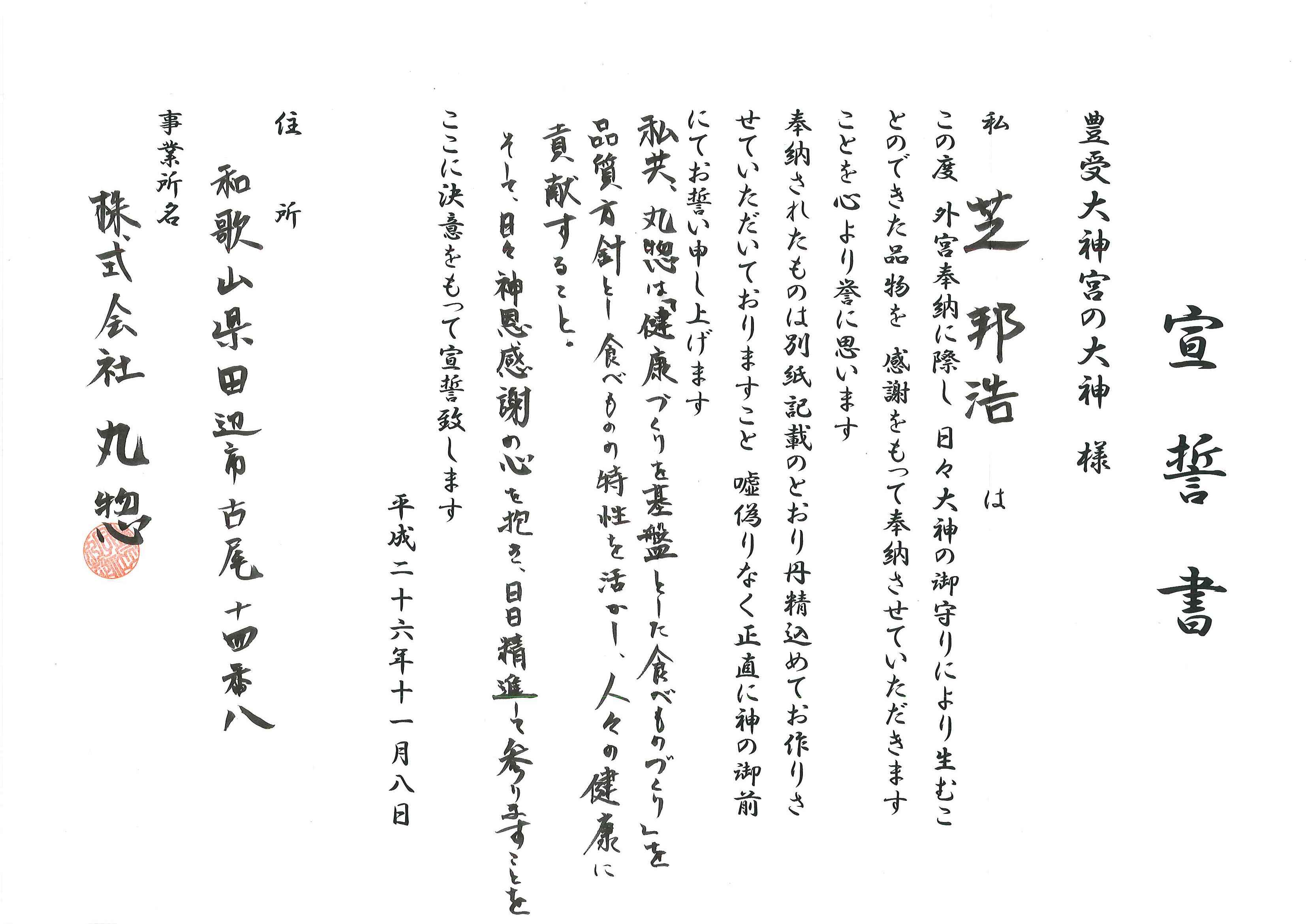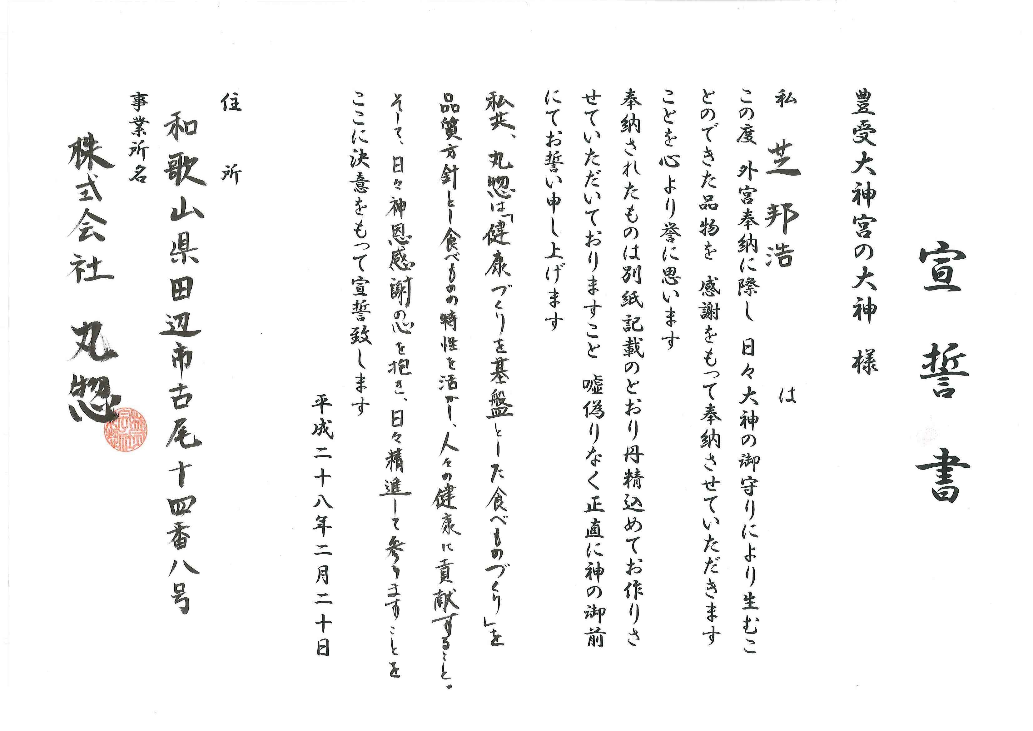 「健康づくりを基盤とした食べものづくり」を品質方針とし、食べものの特性を活かし、人々の健康に貢献すること、日々神恩感謝の心を抱き、日々精進しております。