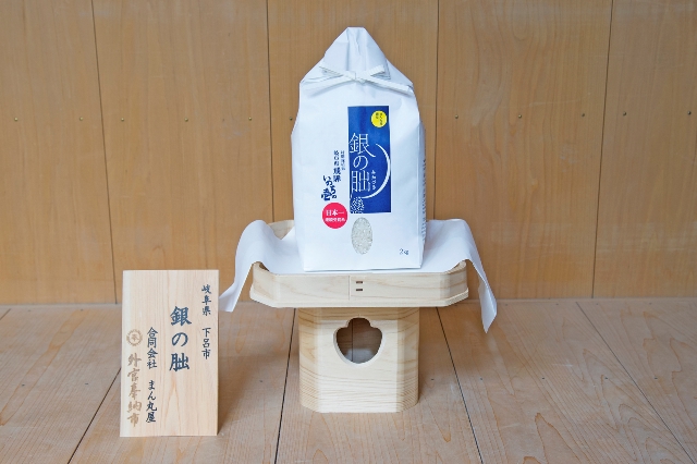 説明 | “銀の朏(ぎんのみかづき)”の品種”いのちの壱”が発見された岐阜県下呂市を含む飛騨地方は、小京都・高山や、日本三名泉のひとつ下呂温泉で知られる、山紫水明の自然豊かな場所です。昼夜の温度差が大きく、清らかな水と豊穣な土に恵まれたこの地域の風土が、甘味・旨味・粒の大きさ(コシヒカリの約1,5倍)、と全てが最高の”いのちの壱“を育みます。厳しい栽培管理のもと育った“いのちの壱”だけが、“銀の朏”として流通します。 |