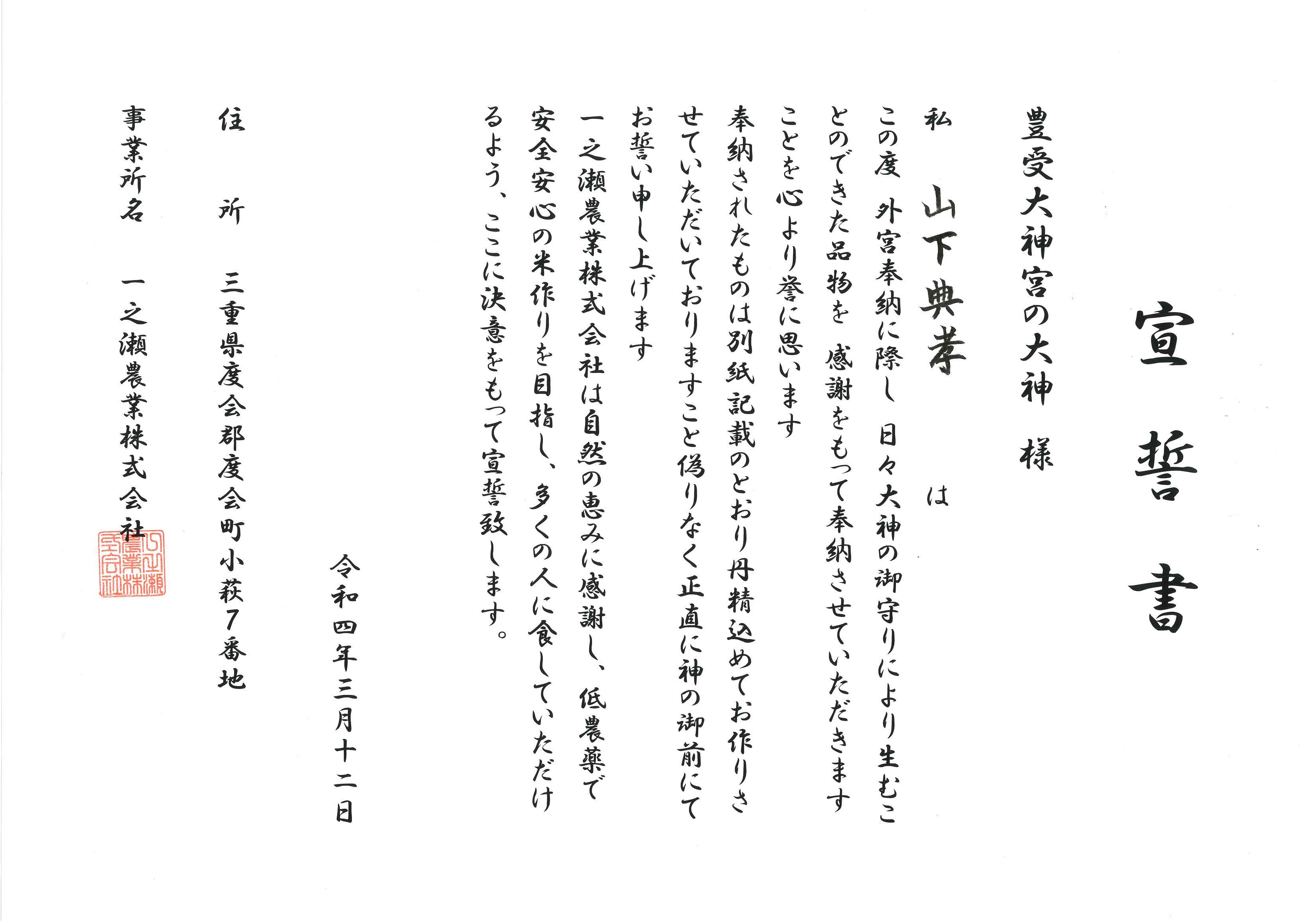 事業内容 | 一之瀬農業㈱は、度会町の山間部に位置し、清流一之瀬川の流水だけを使用し、寒暖差のある気候と恵まれた土壌、米作りに適した地域で安全安心のおいしい米作りに努めて参ります。 |