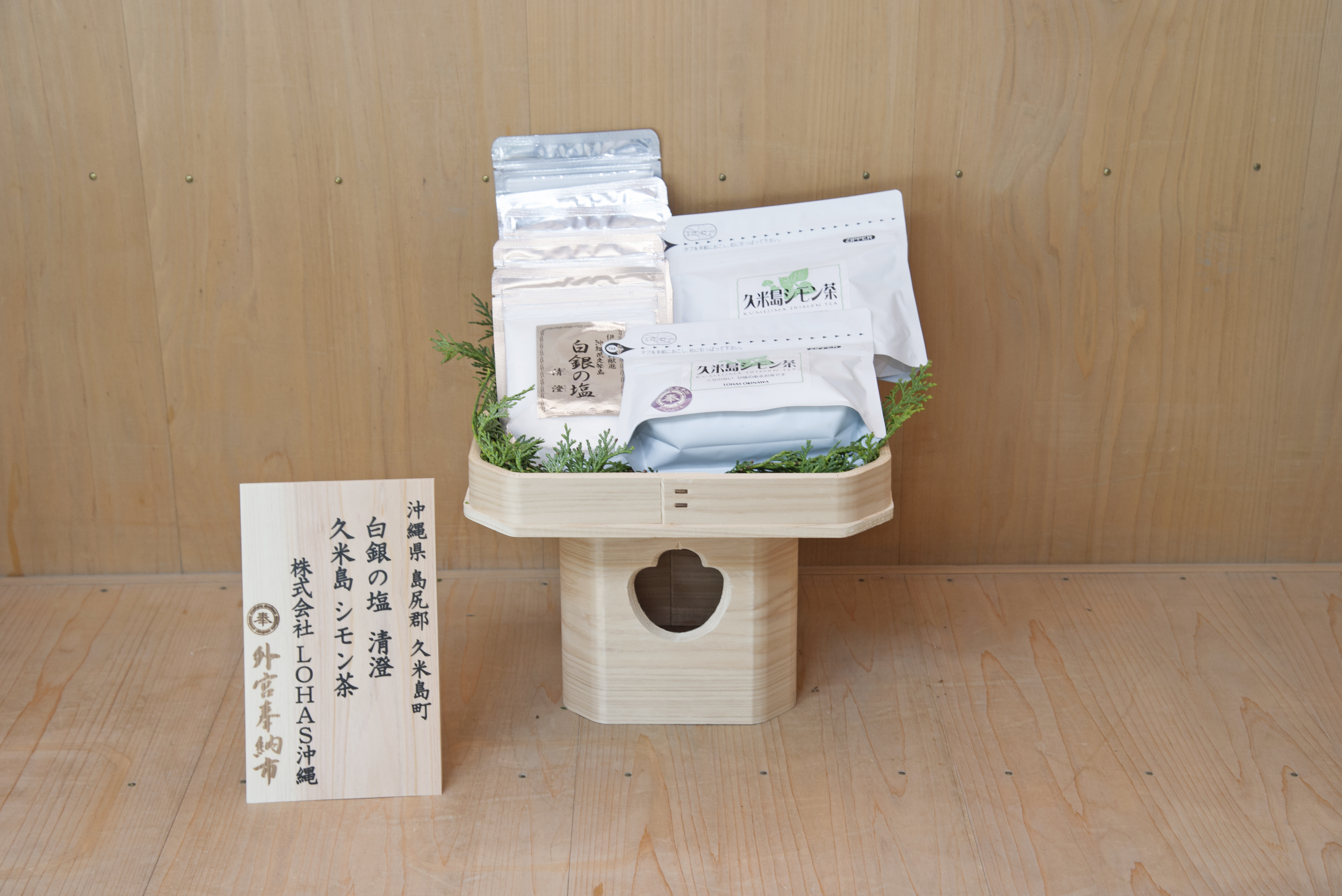 沖縄県那覇市から南方約100㎞の東シナ海にある久米島で取水された海洋深層水を使用し、独自の土釜製塩法で丹念に炊き上げ製塩を行っています。また、久米島の自然の恵みを受けて栽培・収穫した、健康に良いといわれるシモン芋(白さつまいも)の茎と葉を焙煎した健康茶の製造・販売も行っています。
