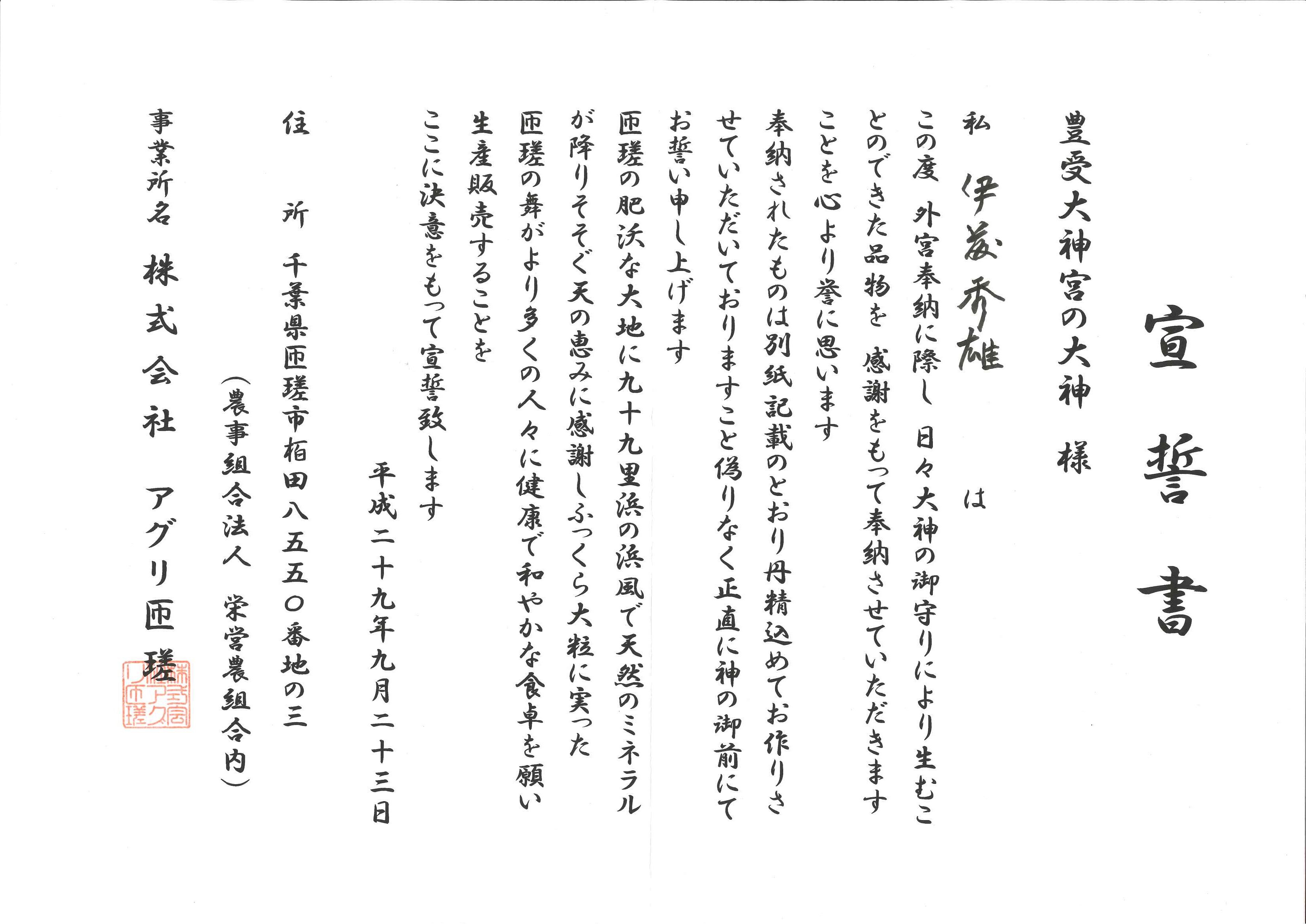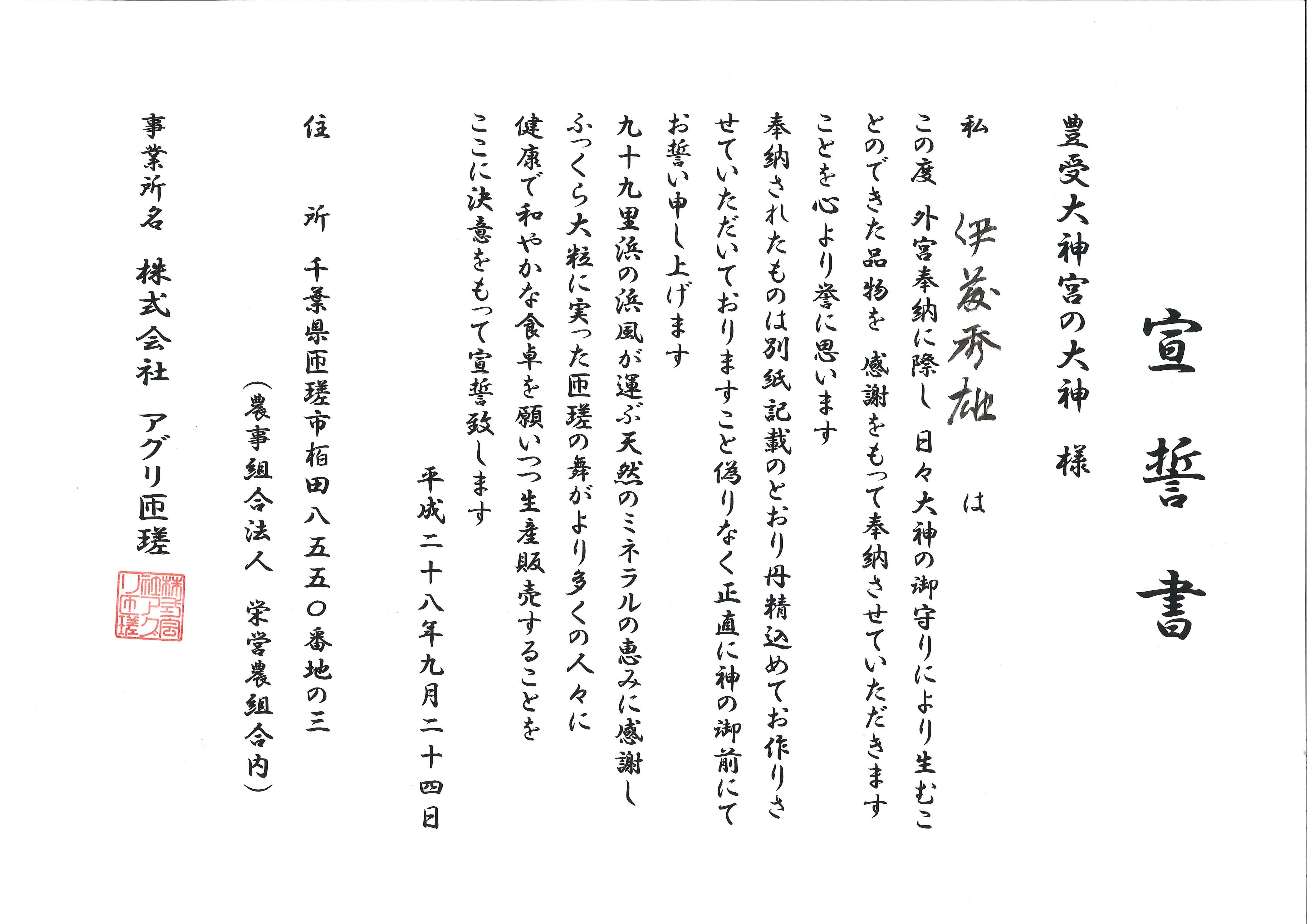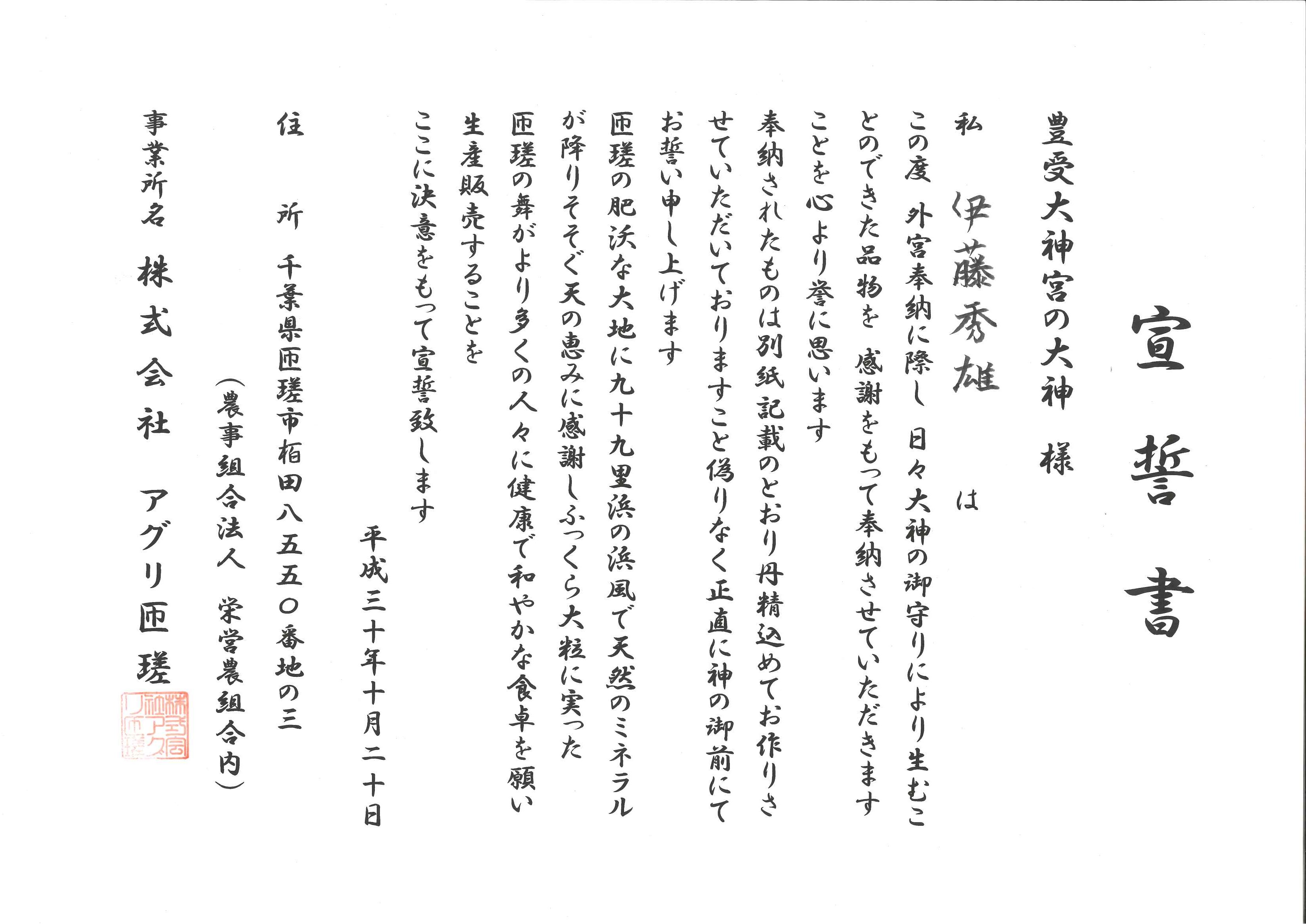 『匝瑳の舞』は、肥沃な匝瑳の大地で美しい麻の布がきらめいて舞っているようにすくすくと健康に育ったお米であることを表現しています。そして、ふっくら大粒美味しお米、『匝瑳の舞』により匝瑳市が日本中に知られることを夢見て名付けられました。生産にあたっては、千葉県認証の減農薬・減化学肥料栽培を行っています。また、食味値が良く低タンパクであり、美味しさにこだわった栽培を取り入れています。炊き上がりはふっくら大粒、冷めても適度の硬さと甘みがあります。第2回サンマリノ神社建立2周年記念祭に参加しました。『匝瑳の舞』をよろしくお願いいたします。