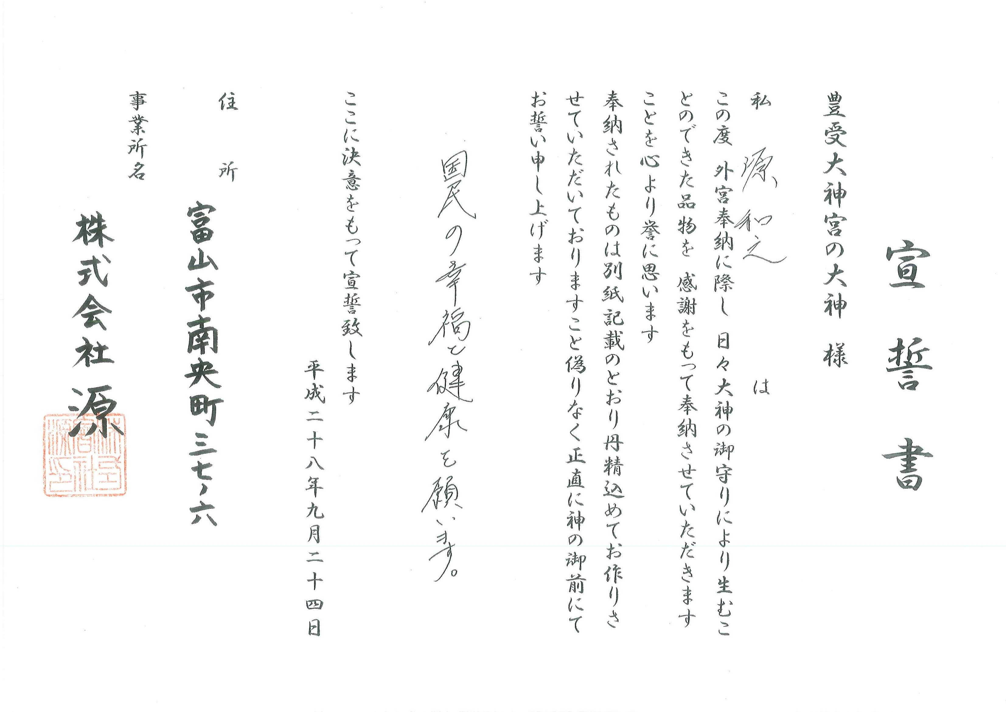 生業の感謝と祈願に奉納が出来たことを嬉しく思います。
