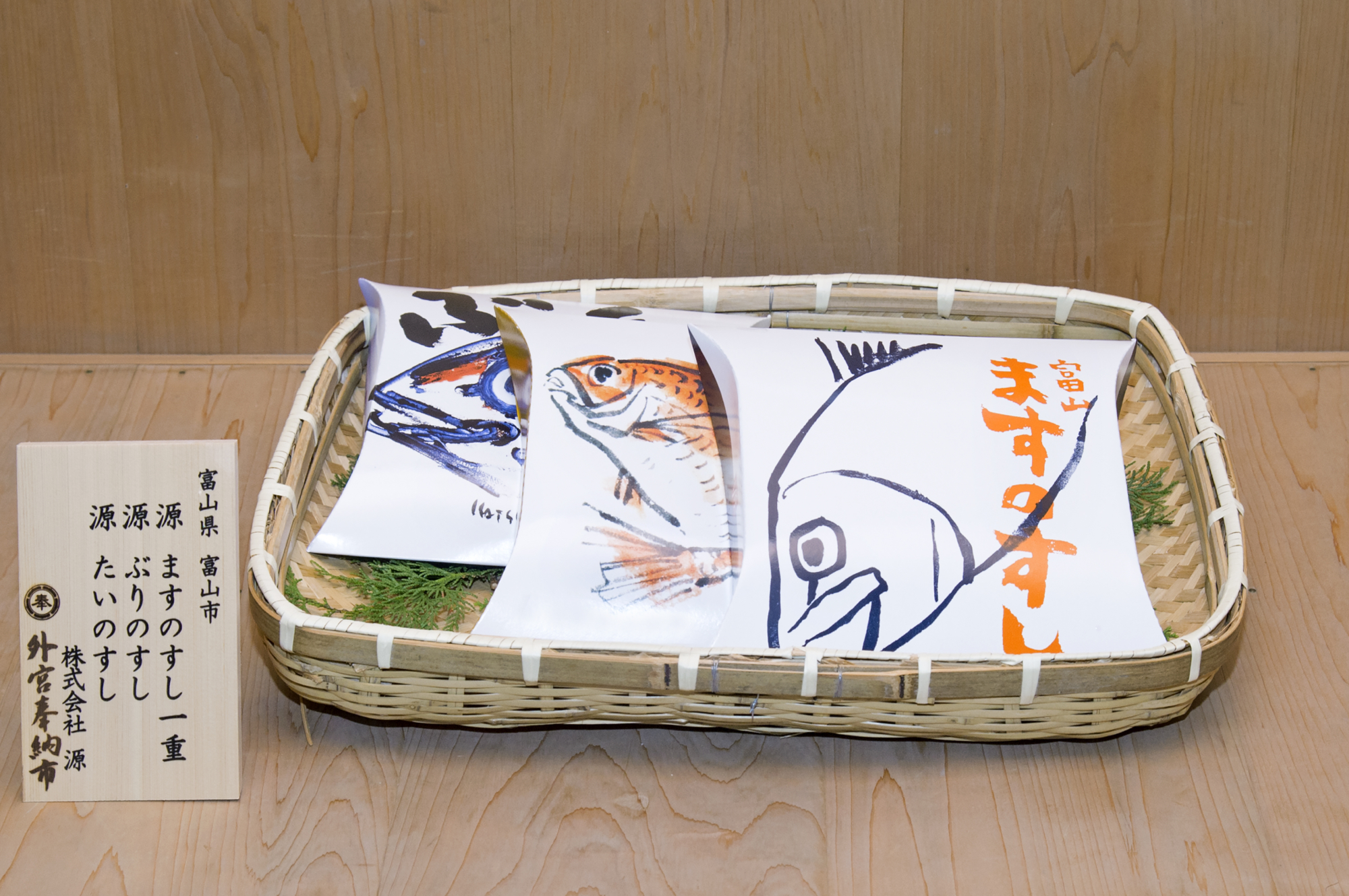笹を敷いた木の容器に、立山の雪解け水で育った富山県産米の酢飯と桜色のますをのせた富山の風土を生かした郷土料理。源のますのすしはその美味しさから駅弁として全国の方に親しまれ名産品となりました。