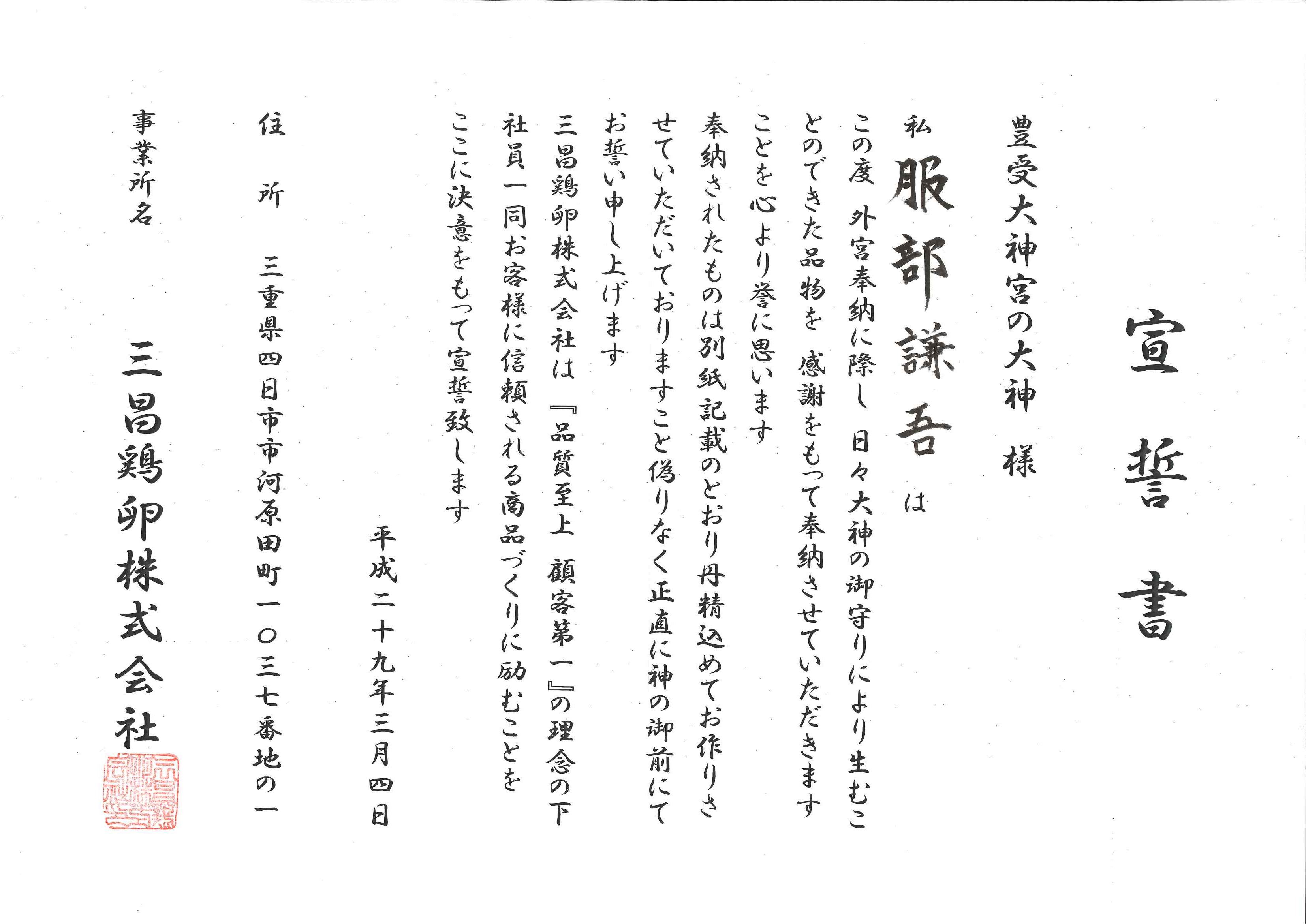 伊勢市商工会議所や四日市商工会議所様のお力で、スムーズにエントリーから奉納まで行う事が出来ました。