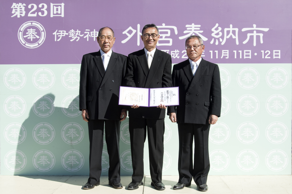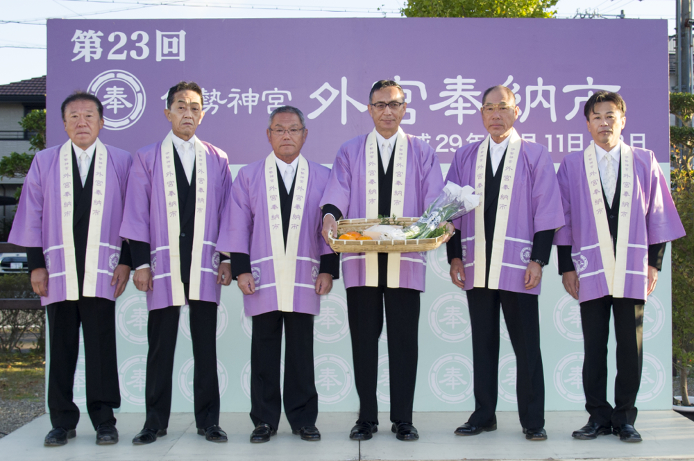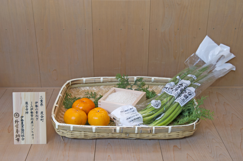 JA伊勢誕生30周年を記念して自慢の農産物である米、青ねぎ、蓮台寺柿を奉納させていただきました。参拝では、食の担い者として身が引き締まる貴重な体験ができました。ここで感じたものを消費者にも感じていただけるよう、さらに努力を重ね、宣誓にて誓った農業の維持・発展に精進していきます。