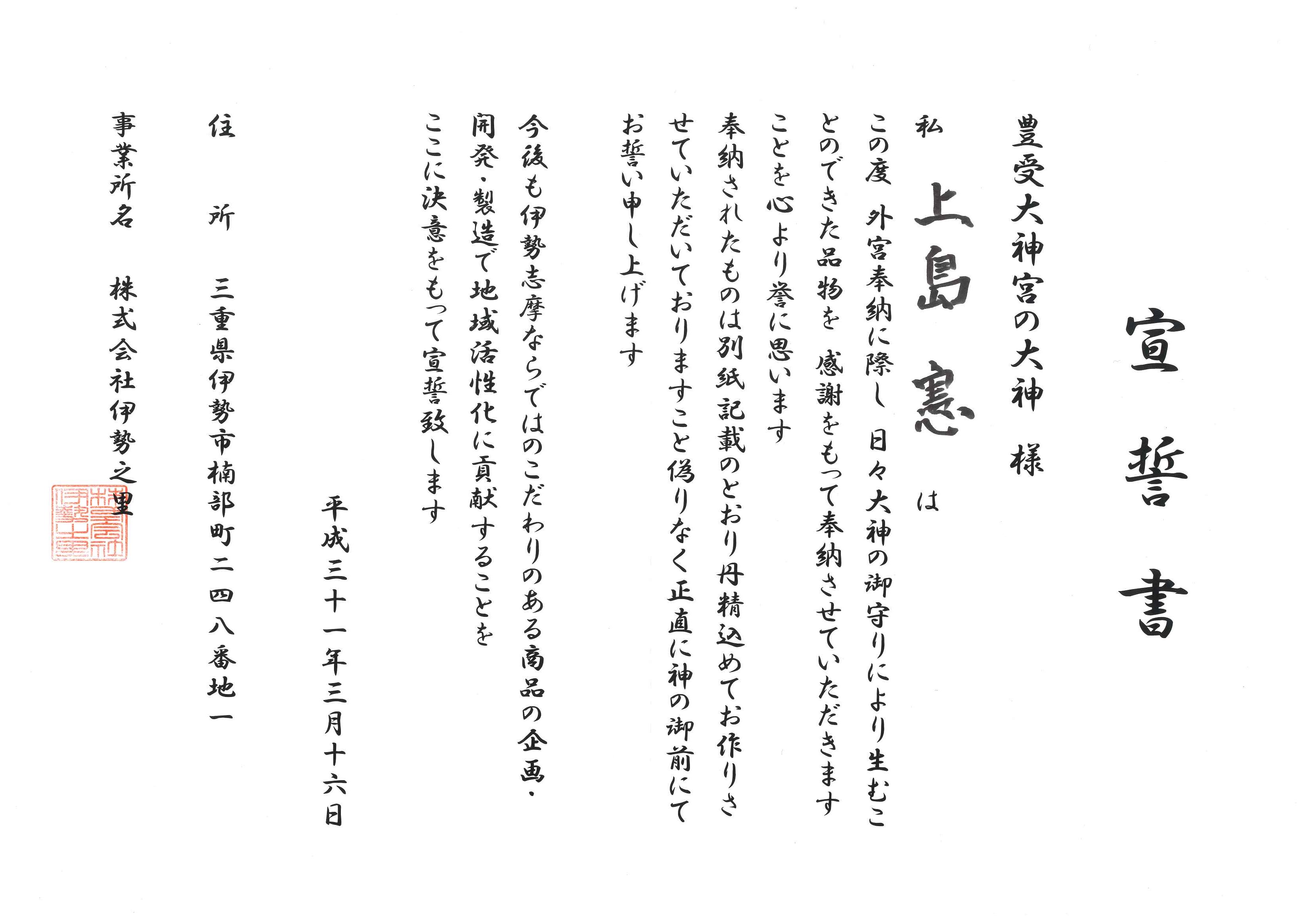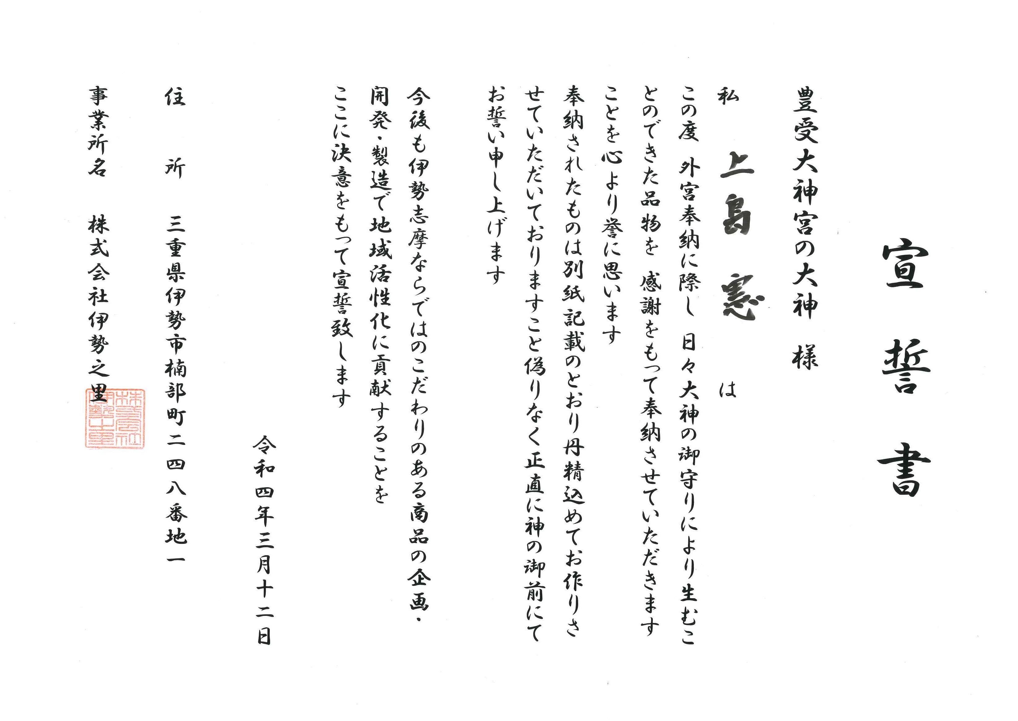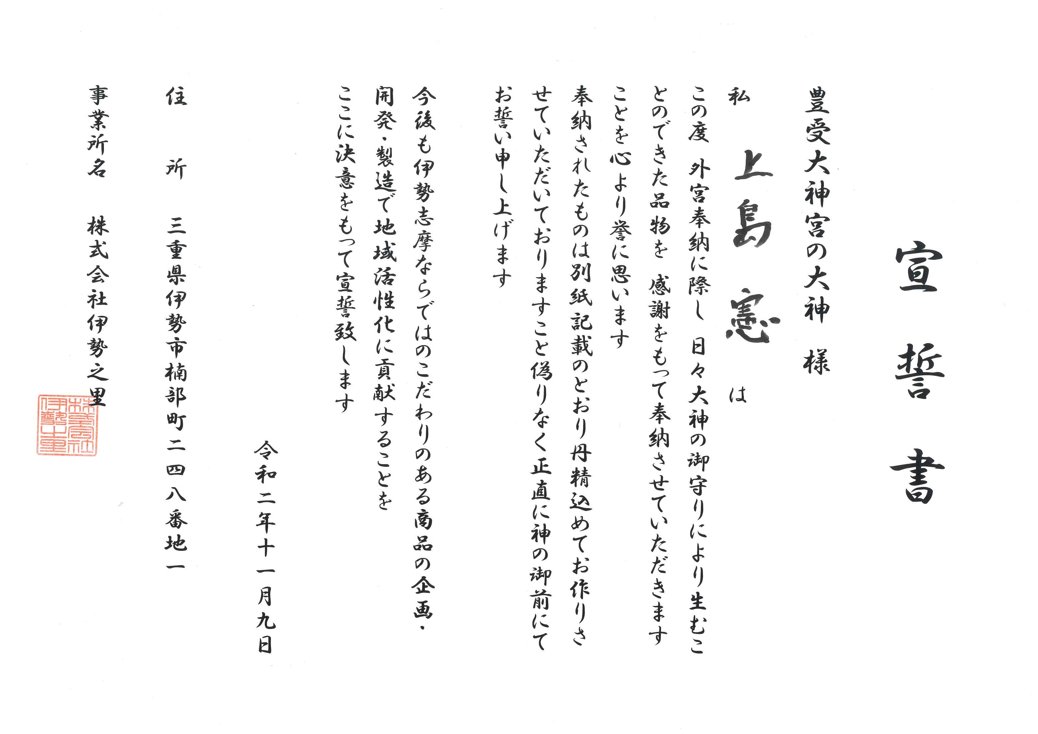 奉納させていただきました商品は、当社ネットショップ(http://www.iseno-sato.jp/content/shop.php)にて購入していただけます。