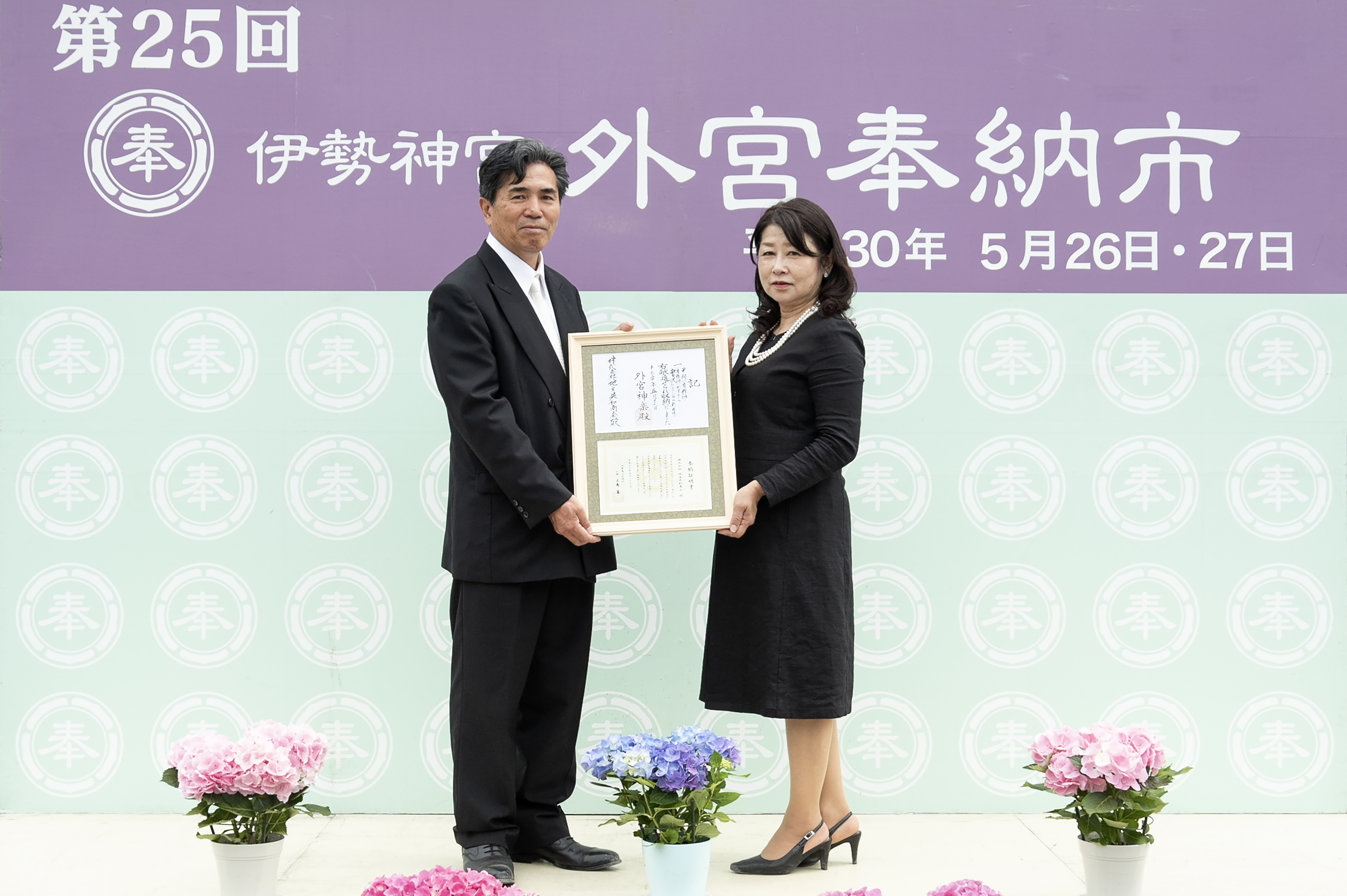 由緒ある伊勢神宮外宮に奉納させて頂き大変ありがたく思っています。