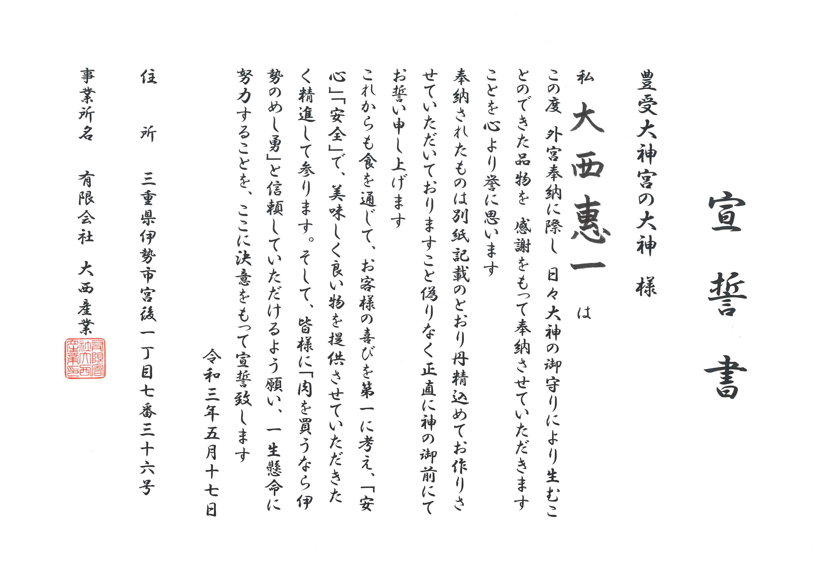 地元のお客様や伊勢へお越しになる方へ、美味しいお肉を提供し喜んで頂ける事を願い、日々精進しております。