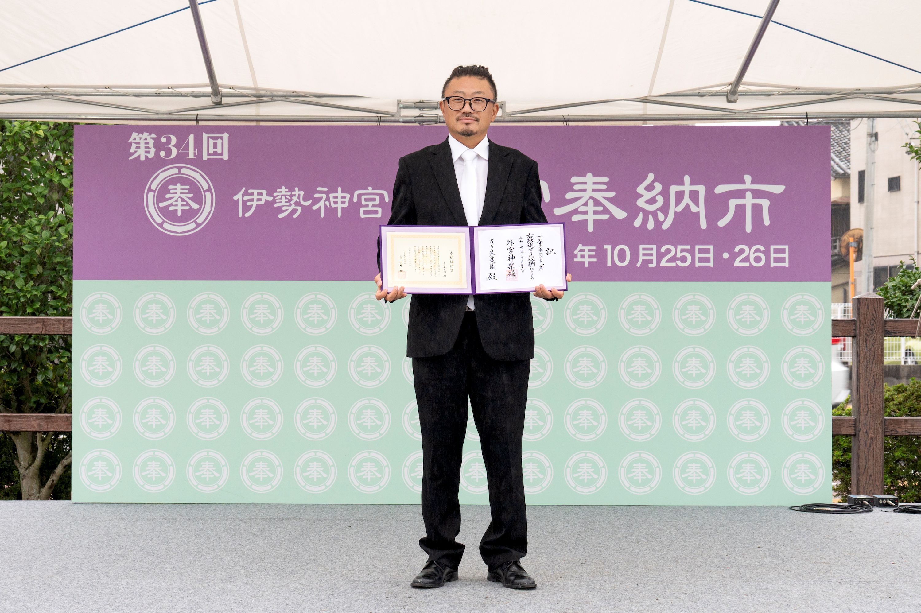 外宮の澄んだ空気と神聖な雰囲気に包まれる中、天日干し米「尊」を奉納させていただき、身も心も引き締まる思いでした。
