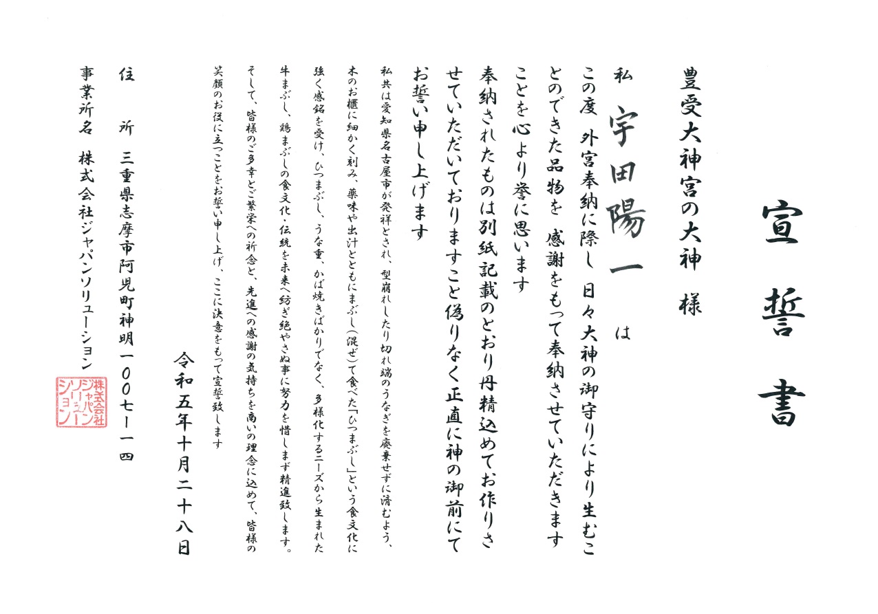 事業内容 | 当社は三重県志摩市において、次亜ショック(次亜塩素酸水)の製造・販売、清掃事業、旅館業、ドローン事業等を行いながら、近鉄鵜方駅前にて"伊勢志摩炭火焼 まぶしのいちや"を経営しております。店舗で使用する原料は国産及び地元産にこだわり、練達した技術と経験をもつ料理長が日々、まぶしのいちや秘伝のタレとともに1尾1尾を丁寧に焼き上げています。 |