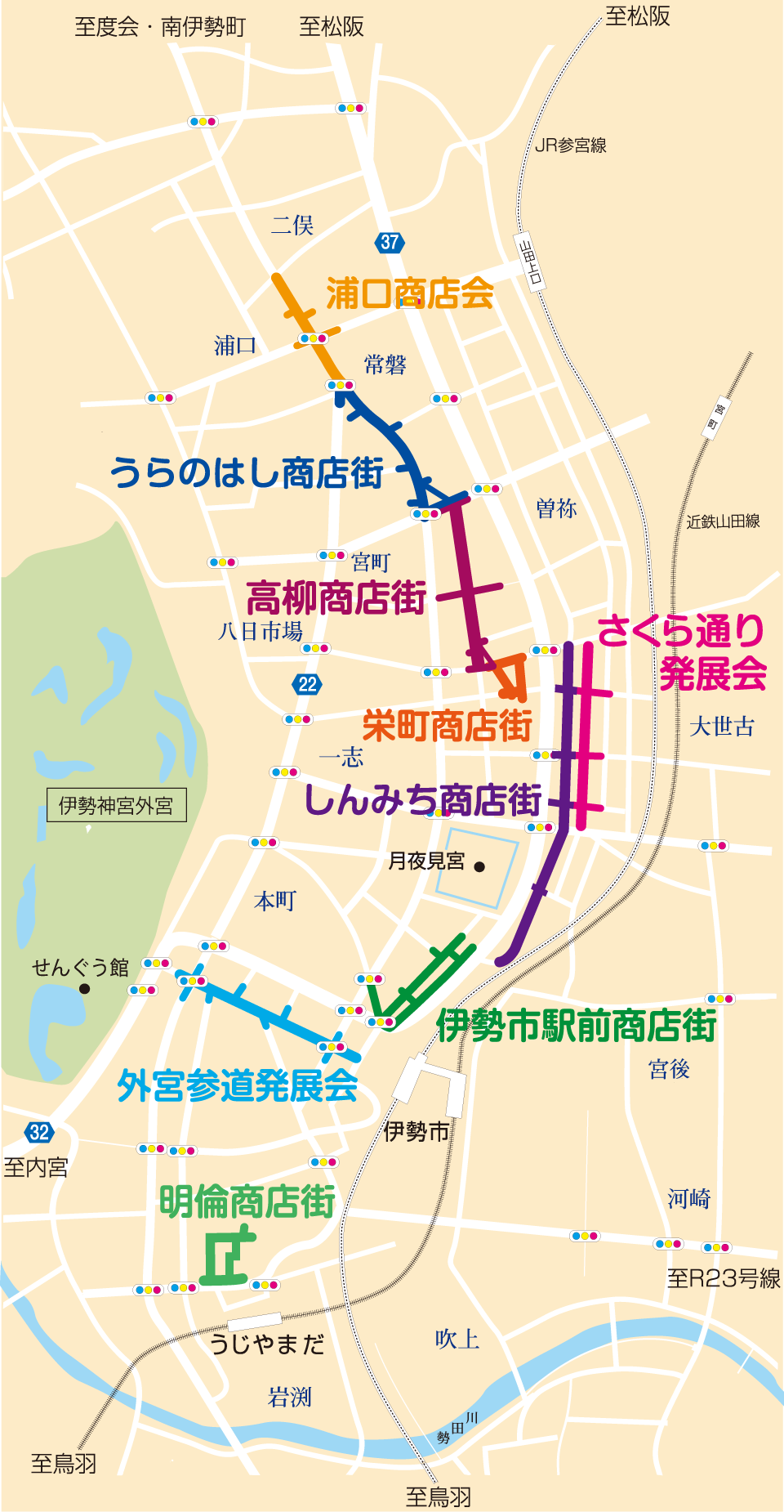 地図上の商店街名をクリックすると各商店街の概要やお知らせをご覧いただけます。
